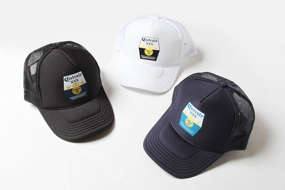 梅雨真っ只中、今年はコロナの影響もあり、夏のレジャースポーツやアウトドアと家族や友人、恋人達との出掛ける頻度が少なくなりそうです。またフェス等の野外イベントも少ないと言うことで気分だけでもと夏らしいアイテムを作製致しました。見ての通り、夏イベントに相応しい、某ビアメーカーのロゴをパロディ。フロントには大判でロゴをプリント、背面にはダイレクトにボトルを。ボディは真夏用に厚過ぎない4.5ozのプレミアムコットンボディを使用、メッシュキャップやや深めのタイプにフロントロゴをプリント、中は汗の吸収を考えウレタン入りのメッシュキャップとなります。1ジョーク効いた夏のアイテムではないでしょうか。7月11日土曜日より発売。是非、店頭にてご覧あれ。