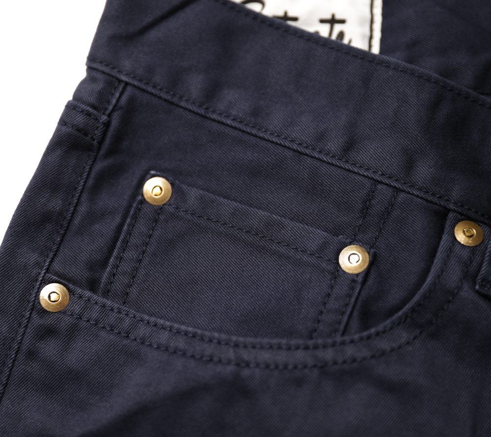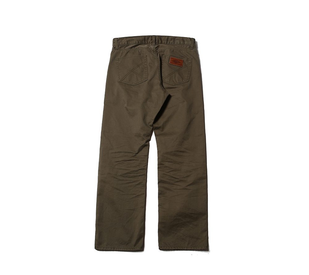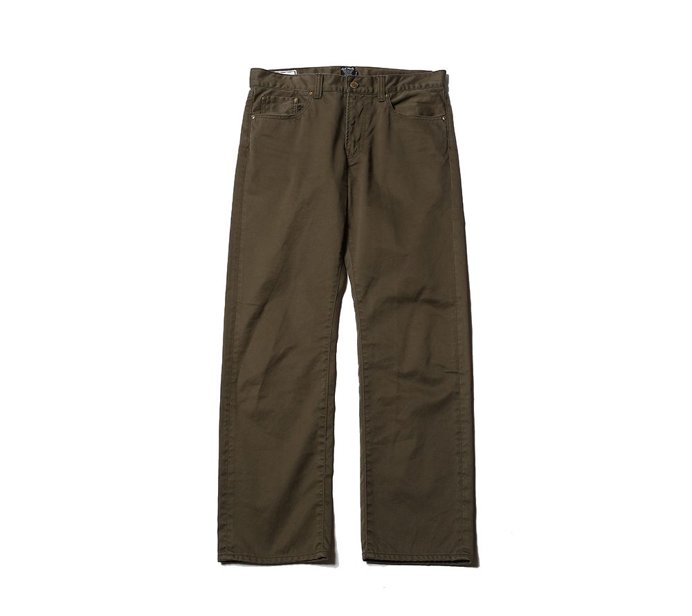 ウエストポイントチノクロスを使用した5ポケットスリムタイプチノーズになります。股上を浅めに設定しており、ワタリ部分からのテーパードを強めにかけた細身で綺麗なシルエットのチノーズとなっております。また、ボールバイオウォッシュを施しておりますのでヴィンテージライクな雰囲気のある1本に仕上がっております。