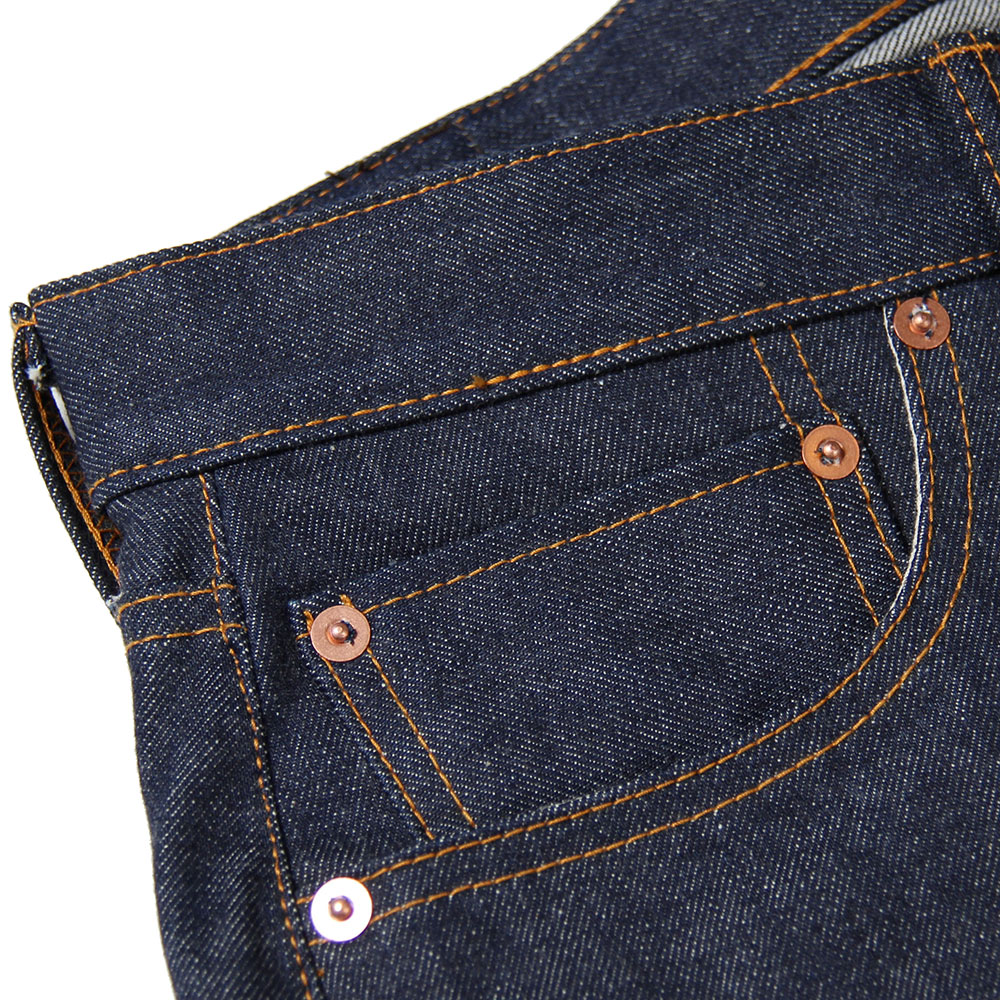 ヴィンテージを思わせるインディゴの青みが特徴的な13OZの米綿セルビッチデニムを使用。日本人に合わせ、定番の501タイプではやや大きかったウエスト周りをスッキリと調整。テーパード感はXXタイプのストレートを再現し、細かいディテールも当時を再現。古着では見ることが少ない、デットストックをイメージしリジットタイプでのリリース。太すぎない、定番のデニムパンツが完成。