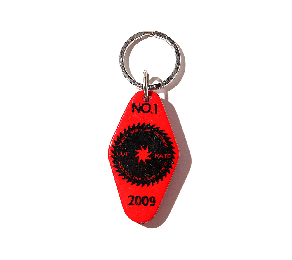アクリル素材を使用したキーホルダーです。キャッチーなカラーが夏の小物周りのアクセントになってくれるアイテムです。また両面にプリントが入ります。