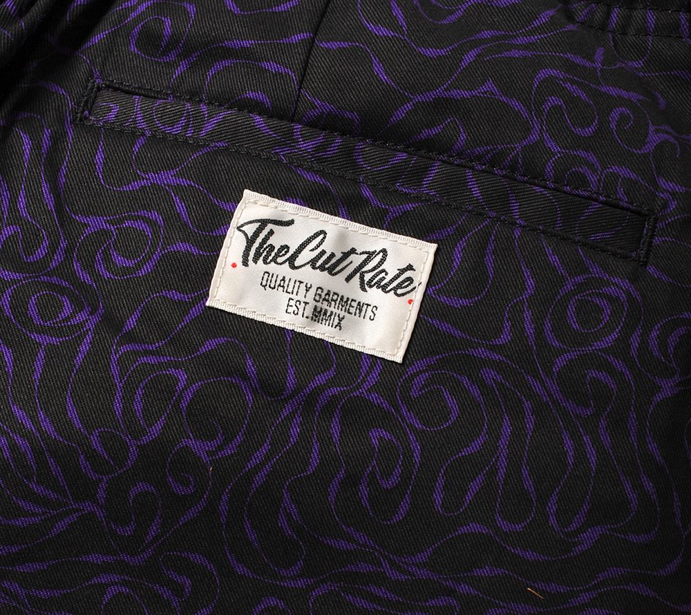 CUTRATEオリジナルのテキスタイルで製作したイージーショートパンツ。サンダーボルトから成るCUTRATEらしい総柄になっています。他にも同素材で、CAPやS/Sシャツもリリースされており、今シーズンを象徴するアイテムの一つではないでしょうか。