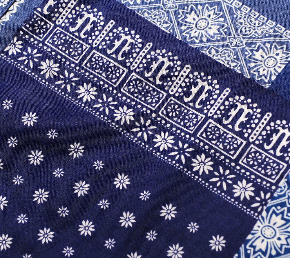 バンダナを掛け合わせた様なデザインの生地で製作したS/Sシャツ。ガーゼの様な薄手の素材ですので、暑い真夏でもさらっと羽織れる、そんなシャツに仕上がっています。