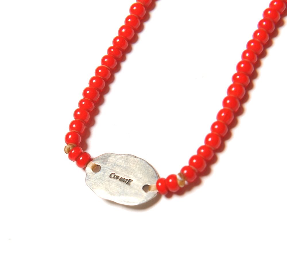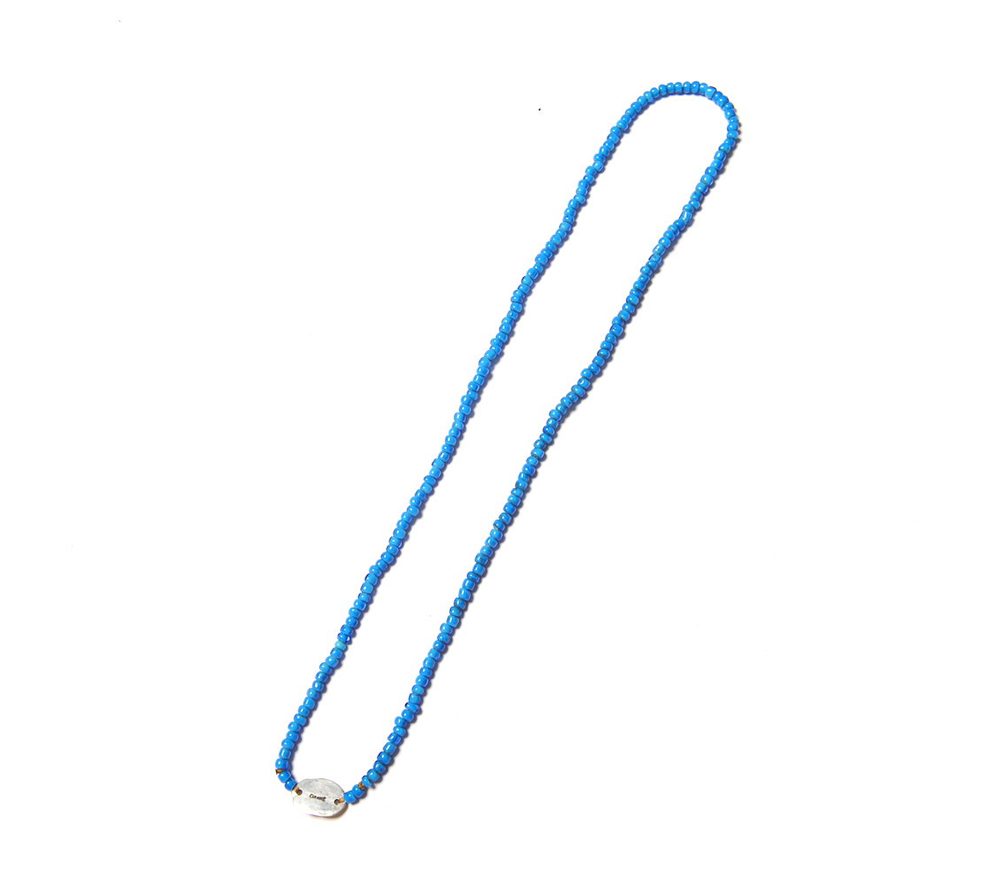 ヴィンテージガラスビーズを使用し、シルバーのチャームが付き、雰囲気良く仕上がっております。長さも少し長めのネックレスになりますのでカットソーに合わせるだけではなく、シャツの上からも合わせる事が出来ます。また、ガラスビーズの絶妙な光沢感がスタイルのアクセントになってくれるのではないでしょうか。