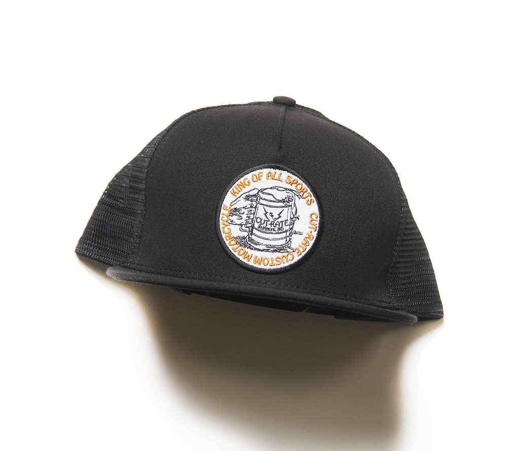 BEERジョッキを持ったグラフィックワッペンをフロントパネルに施したメッシュCAP。MADE IN USAボディーを使用しています。