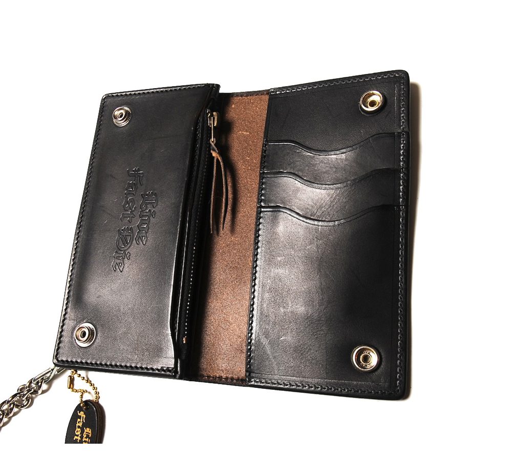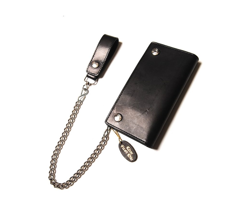 80年代のバイカーズウォレットをモチーフに作製したロングタイプのウォレットになります。チェーンとウォレットが一体型の仕様となっております。また、チェーンはベルト通しのタイプになっておりますの、付ける位置もお好みで付けて頂けます。
