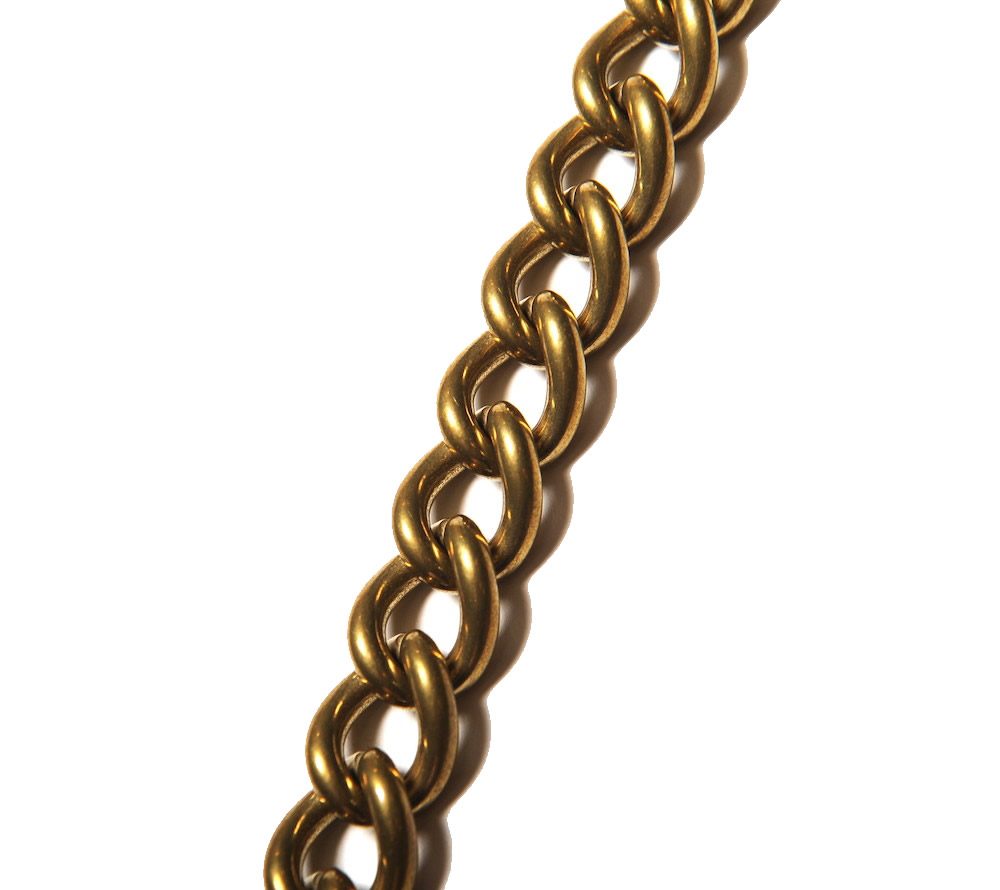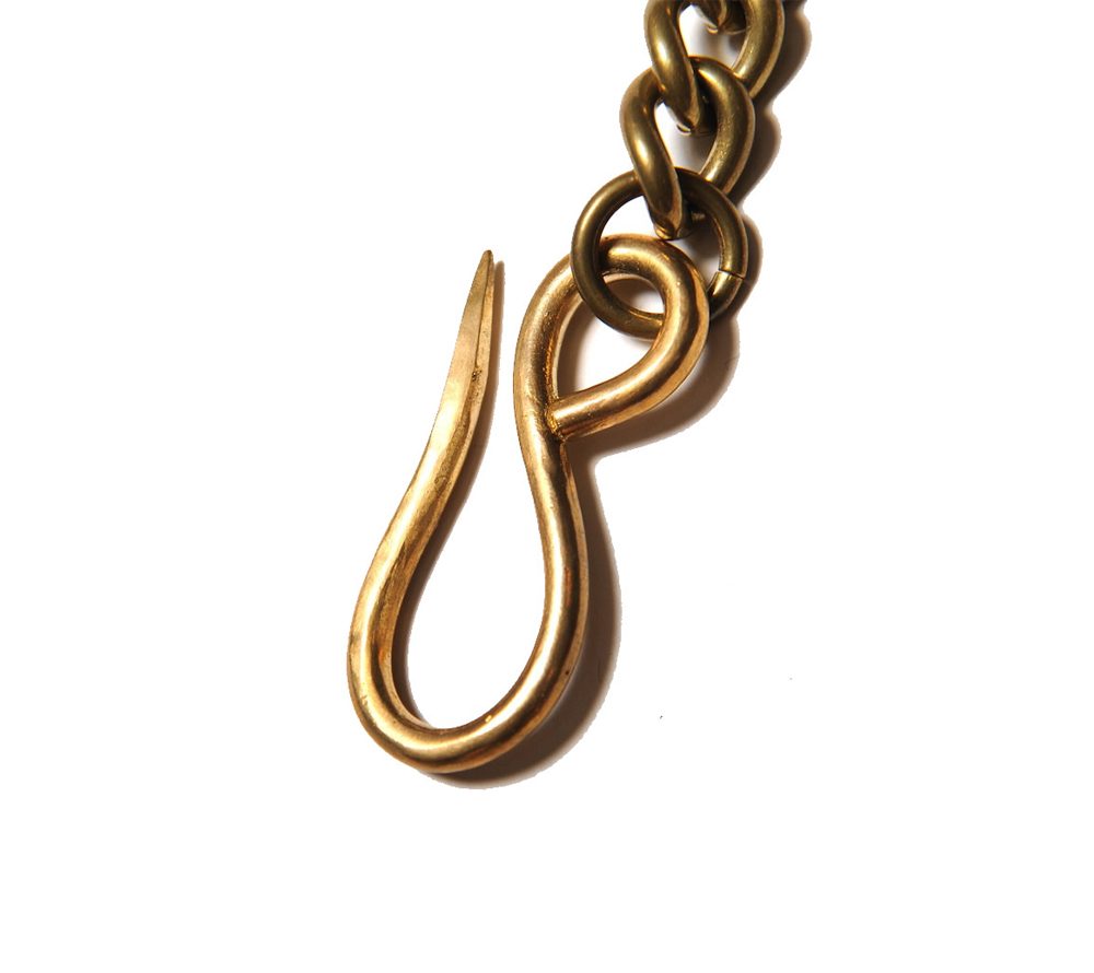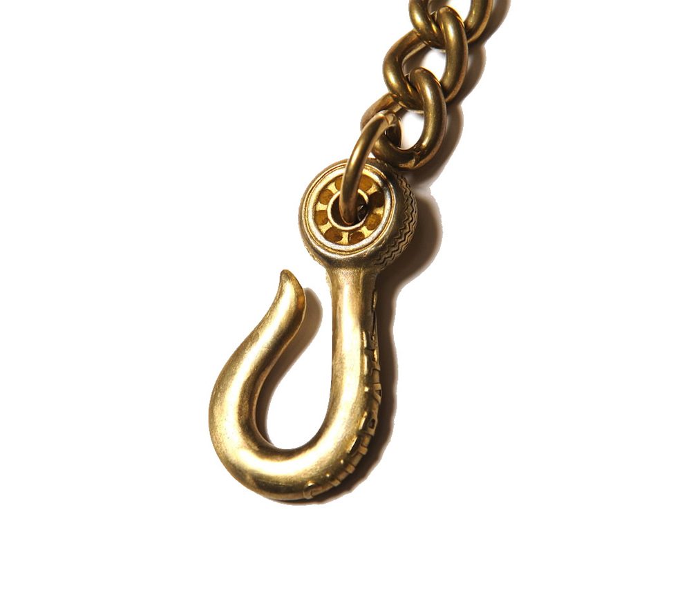 BRASS素材を使用し作製したウォレットチェーン。フック部分をウィールとフレームを組み合わせたオリジナルデザイン。CUTRATEのバックボーンである、モーターサイクルの要素からインスパイアされたアイディアを、ウォレットチェーンに落とし込んだ、ブランドならではなアイテムに仕上がっています。
