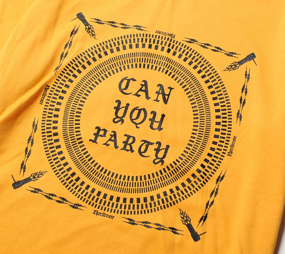 オリジナルで製作したコットン100%ボディーのTシャツです。 今シーズンのメイングラフィックをフロントに、バックにはブランドロゴをプリントしています。デザイナーのバックボーンの一つである、ミュージックの要素が反映されたTシャツです。