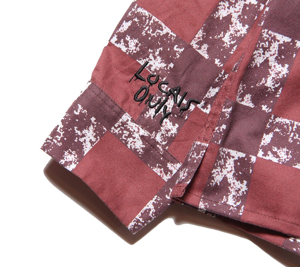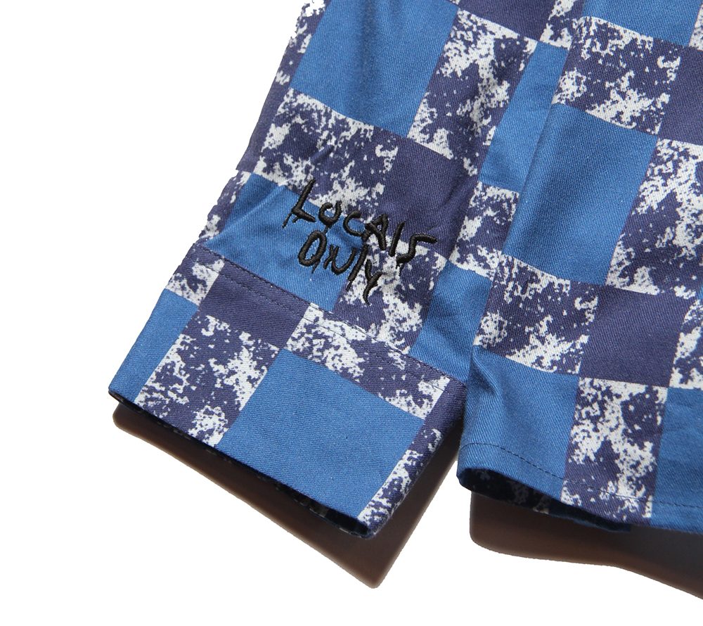 50年代ライクなチェック柄をオリジナル生地で作製したプリントチェックシャツ。シルエットもややゆったりとしたアメリカンサイズのボックスタイプにてリリース。両袖にも"LOCAL'S ONLY"、ブランドロゴを刺繍にてオン。