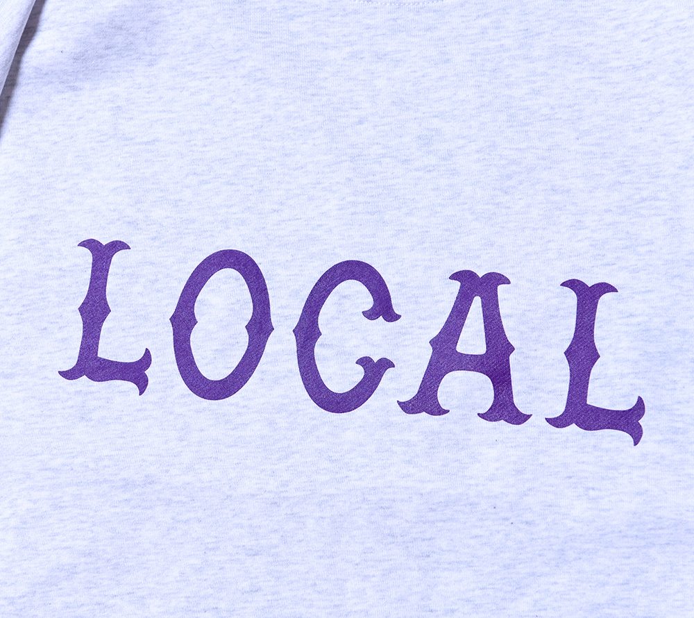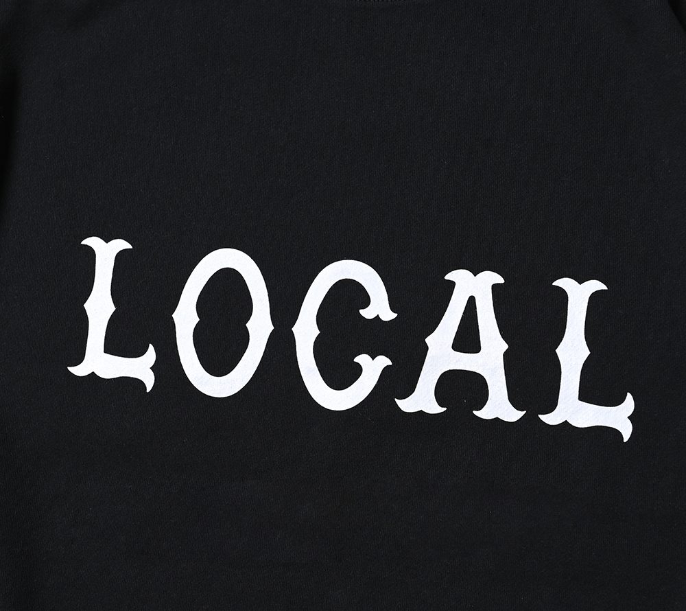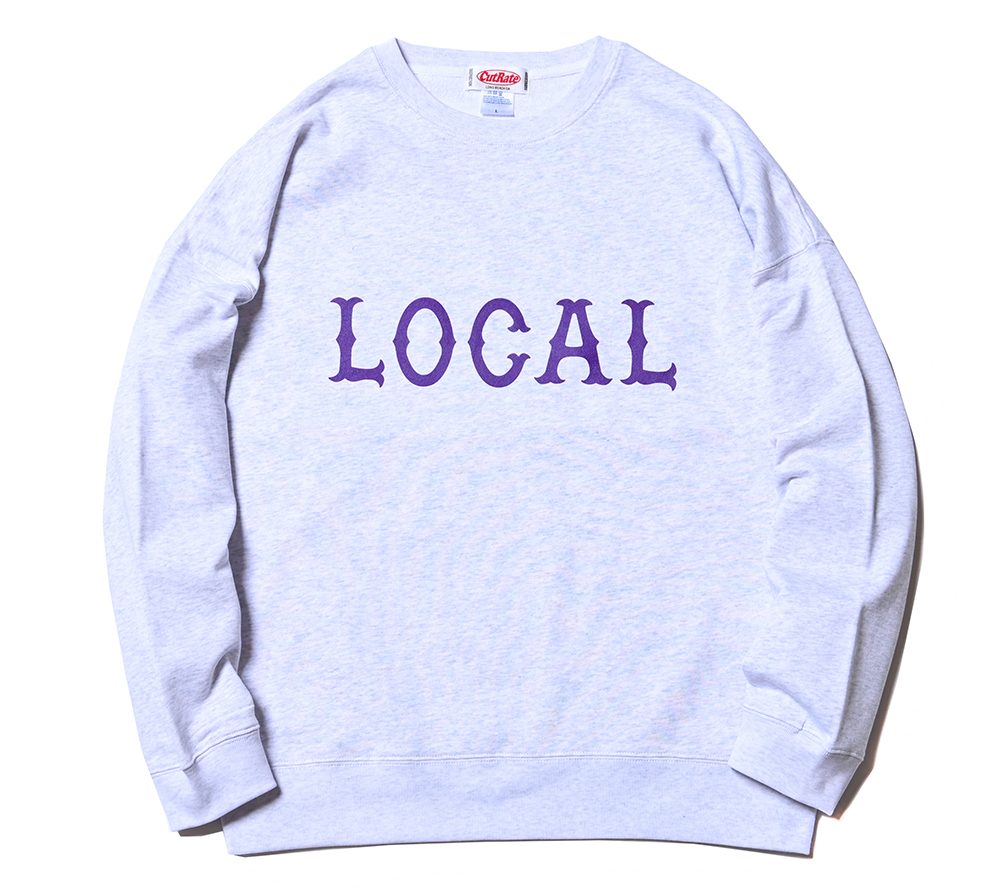 フロントにCUTRATEのアイコンでもある”LOCAL”ロゴをプリントで落とし込んだデザイン。シルエットはドロップショルダーのスウェットで製作。