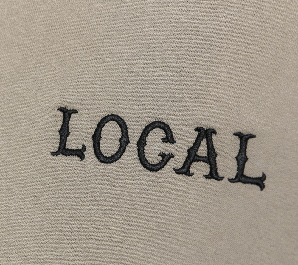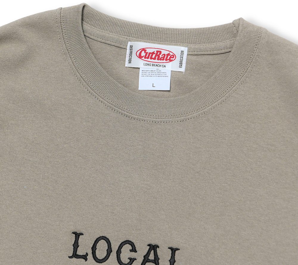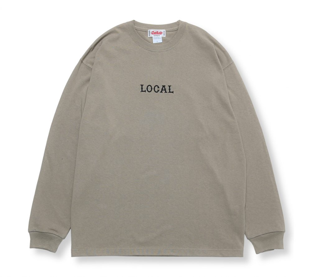 フロント中央にCUTRATEのアイコンでもある”LOCAL”ロゴを刺繍で落とし込んだデザインのL/S TEE。。9.1ozのヘビーウェイトボディーを使用し、ドロップショルダーのL/S TEEで製作。