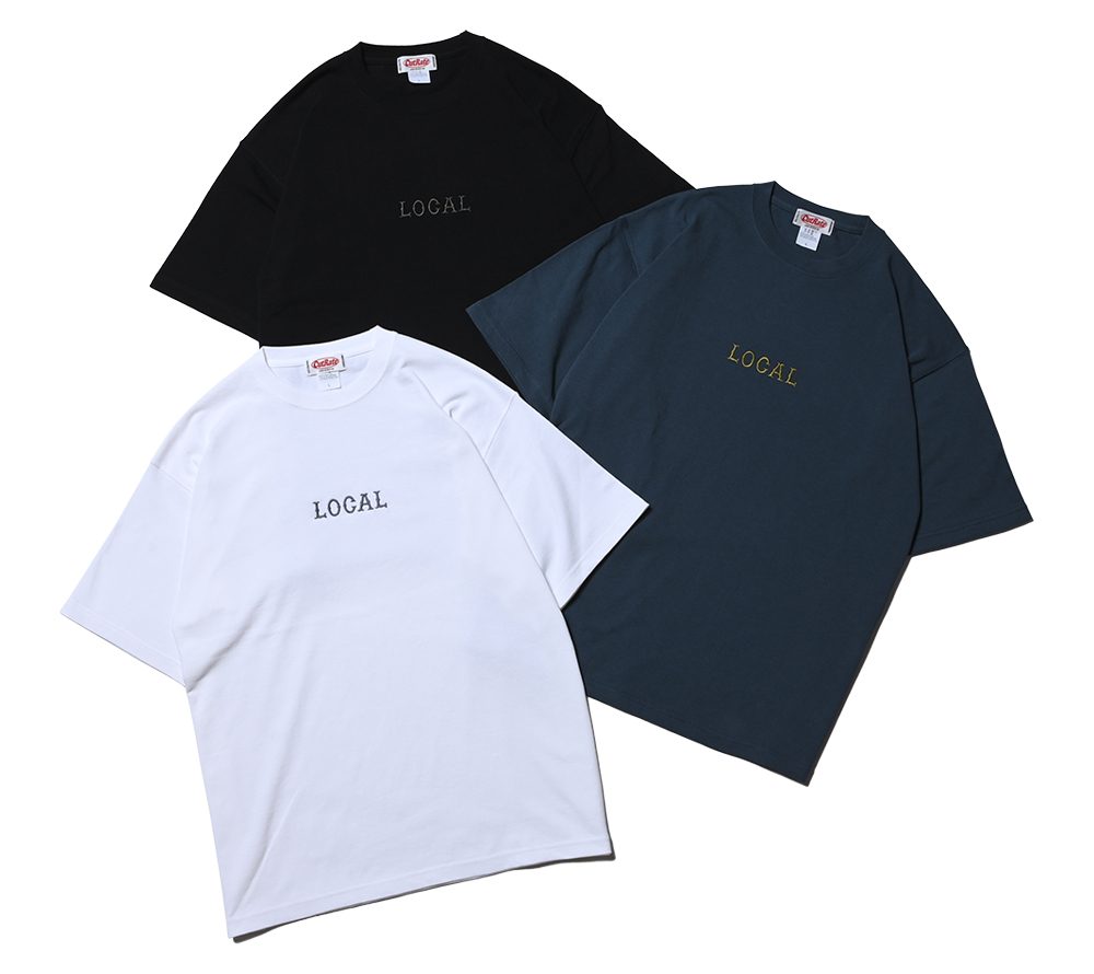 フロント中央に刺繍でLOCALロゴを落とし込んだデザイン。シルエットはドロップショルダーで製作。9.1ozのヘビーウェイトボディーを使用し、ドロップショルダーで製作。