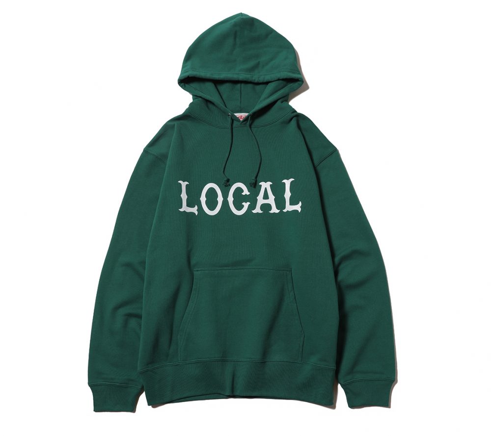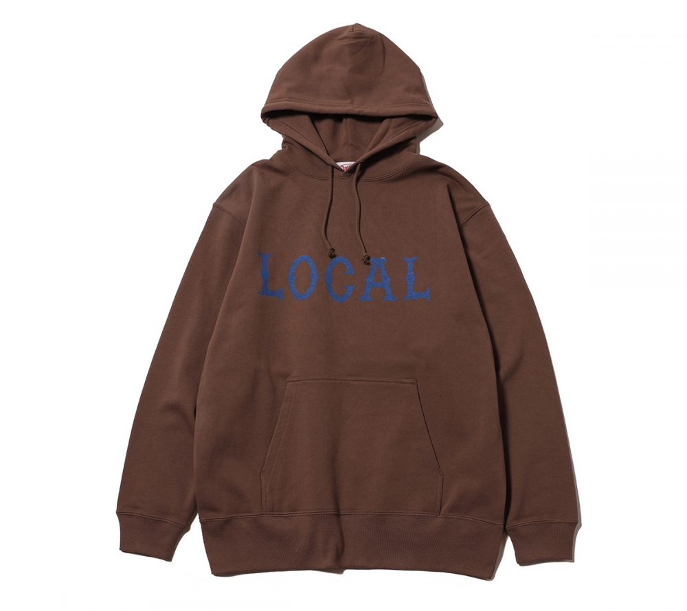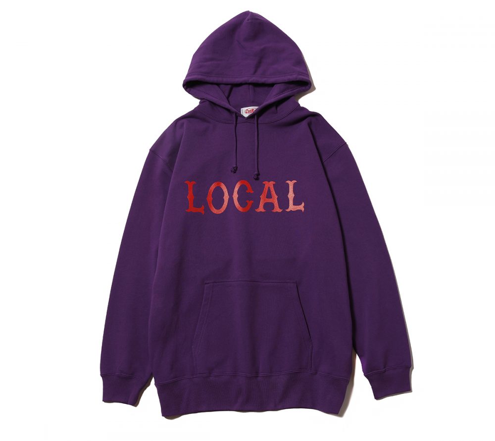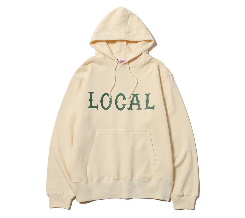 フロントにCUTRATEのアイコンでもある”LOCAL”ロゴをプリントで落とし込んだデザイン。シルエットはレギュラーシルエットのプルオーバーフーディーで製作。