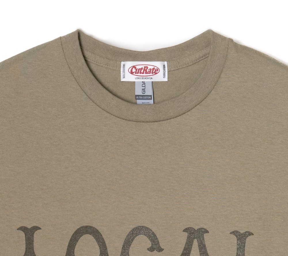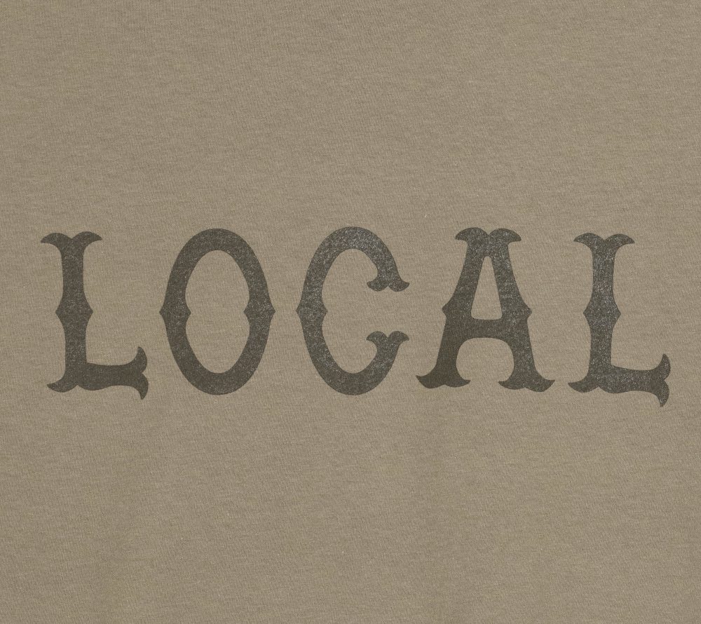 フロント中央にCUTRATEのアイコンでもある”LOCAL”ロゴを落とし込んだデザインのTEE。ボディーはGILDANのフラッグシップTシャツ6.0 ozのオープンエンド糸を使用した生地はアメリカンテイストたっぷりのザックリとした素材感が特徴。