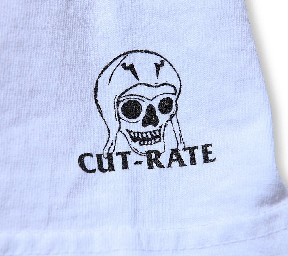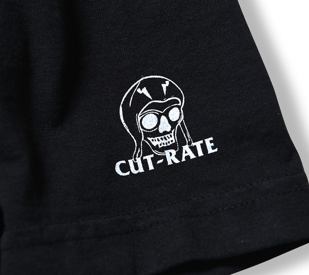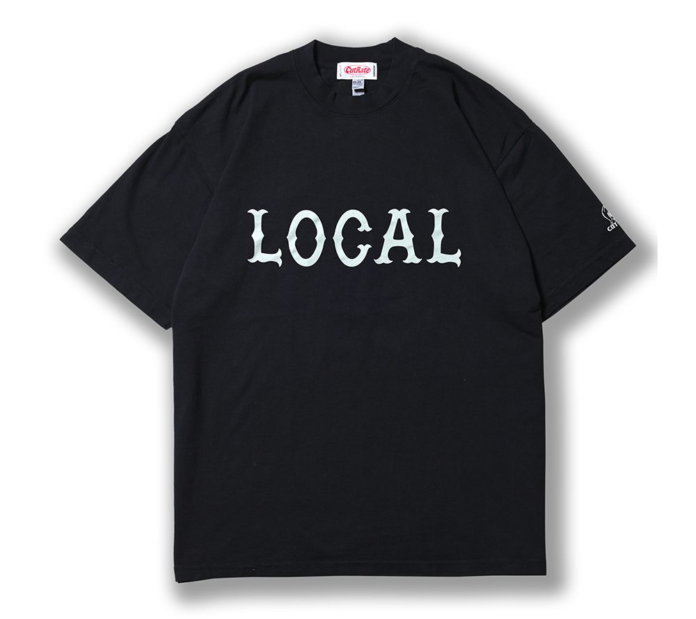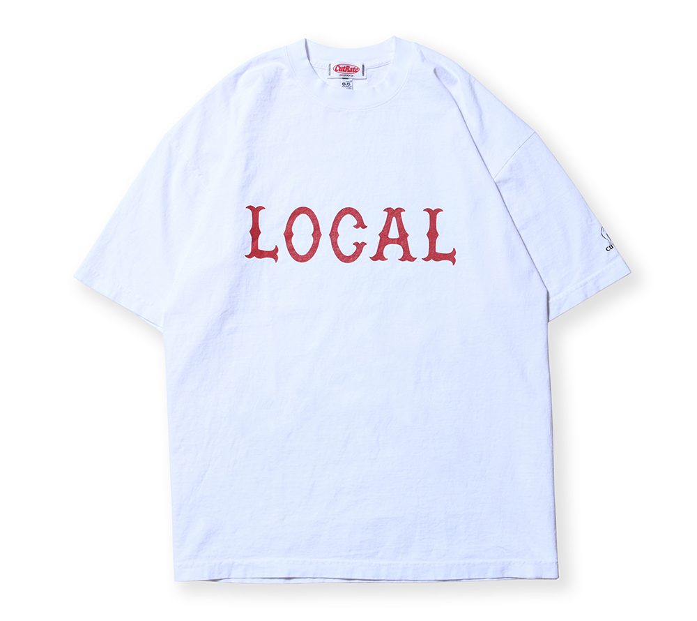 袖口にワンポイントでスカルロゴを落とし込んだデザイン。フロントにCUTRATEのアイコンでもある"LOCAL"ロゴが入る。ボディーは6.5オンスの重量感と丈夫さが特徴のMADE IN USAのLOS ANGELES APPARELボディーのガーメントダイ(後染の)半袖Tシャツで製作。
