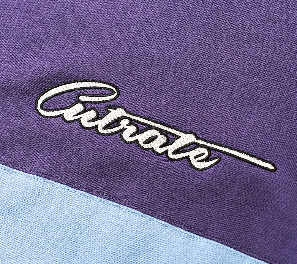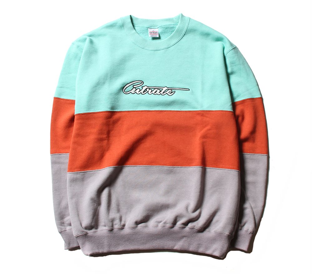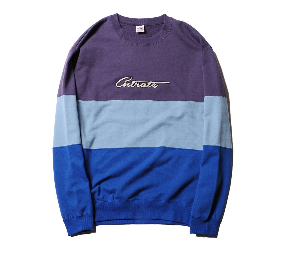 三色で切り替えしたクルーネックスウェット。フロントにブランドネーム刺繍が入っています。90年代のストリートカルチャーで良く見られたディテールやカラーリングをイメージソースに、現代風にリバイバルしたアイテムに仕上がっています。