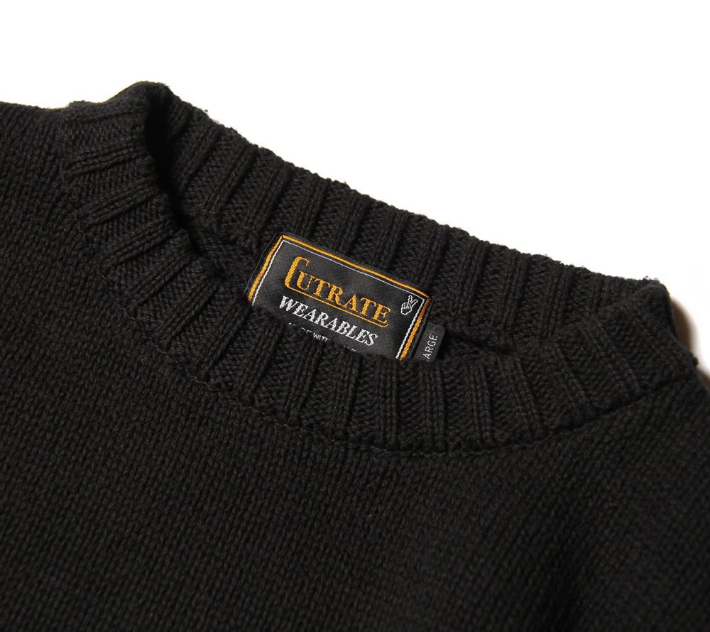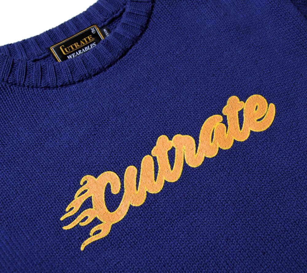 コットン100%の素材を使用し、作製されたクルーネックタイプのニットセーターになります。フロントにはフレイムをモチーフにしたブランドロゴをプリントにて施し、雰囲気ある仕上がりとなっております。また、コットンニットは通気性にも優れ、肌触りも良いので、秋口に重宝出来るのではないでしょうか。