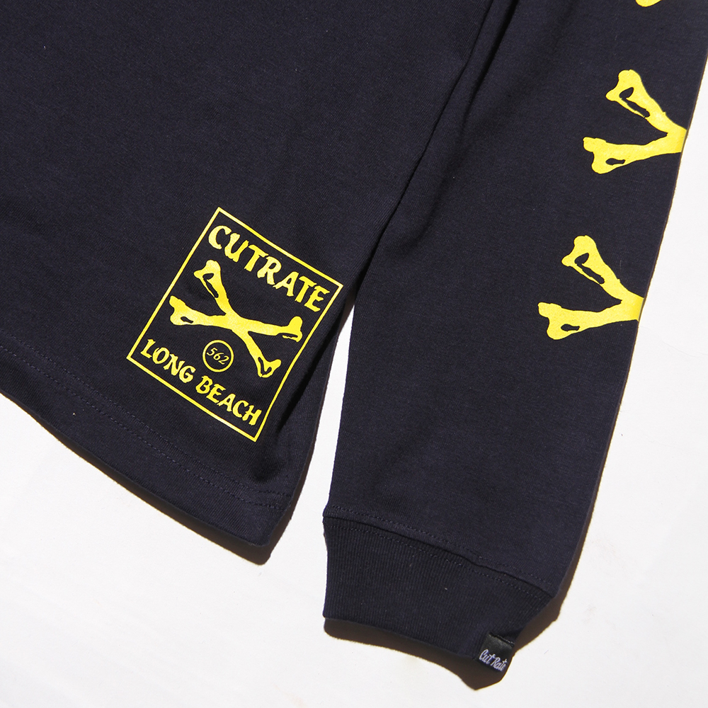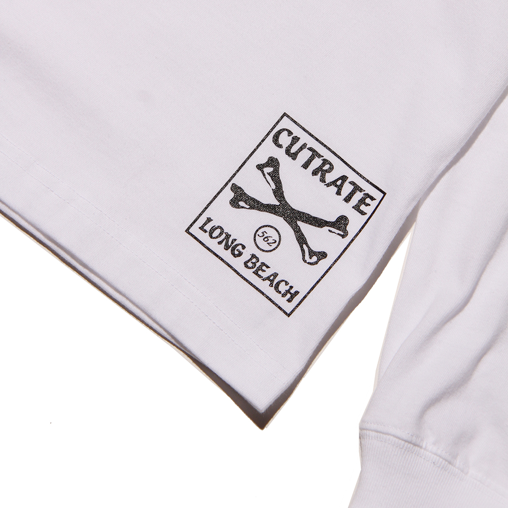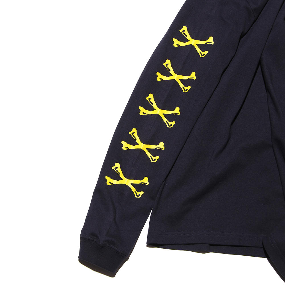 5.6OZのコットンボディを使用し、袖にはクロスボーン、フロント左胸、裾にロゴをプリント。背面にもスクエア型のロゴをオン。さらっと着用できる生地感となっており、暖かくなるこれからの時期に活躍します。