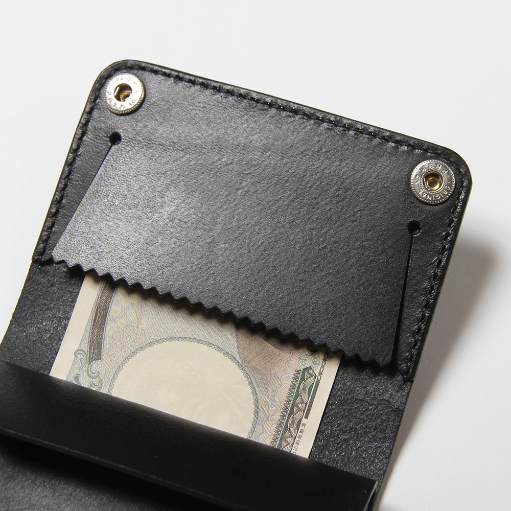 上質でコシの強いプレーンなイタリアンレザーを使用し、程よく入るカードケースにフラップ付きコインポケット、"お金を立てる"意味合いと日本独自の縦入れ(封筒など)から札入れは縦入れ仕様に。また札入れのフラップ部分は富士山の残雪をイメージ作製。外側は敢えてシンプルに無地に、ただ、両端のスナップ留めは内側にすることで、ト留め具の膨らみ部分が経年後の艶がさらに出ることで、セクシーさを演出。コロナの影響も続く中、新規一転、来たる6月20日今年の1年の中で最も良いとされる開運日に是非、使い始めて頂きたいアイテムとなります。