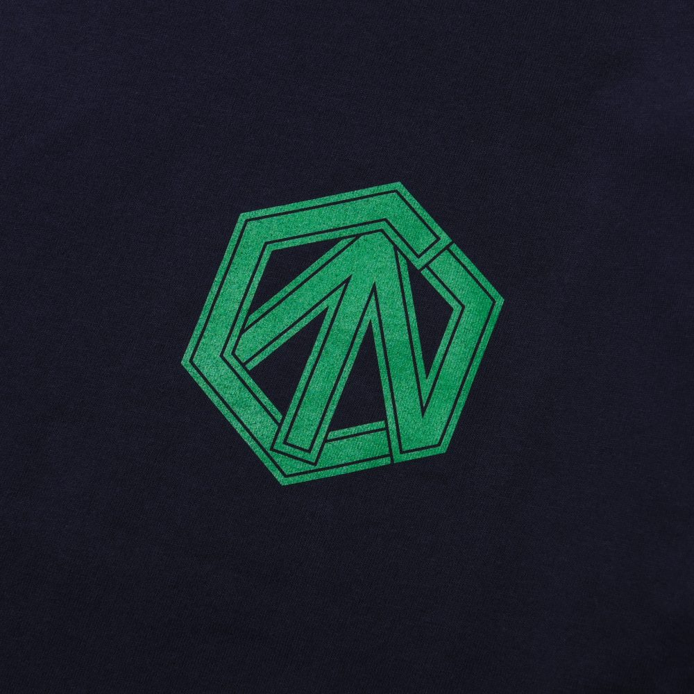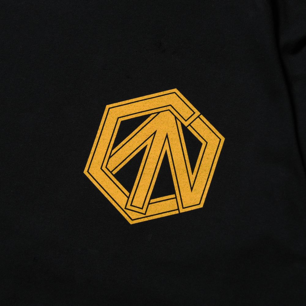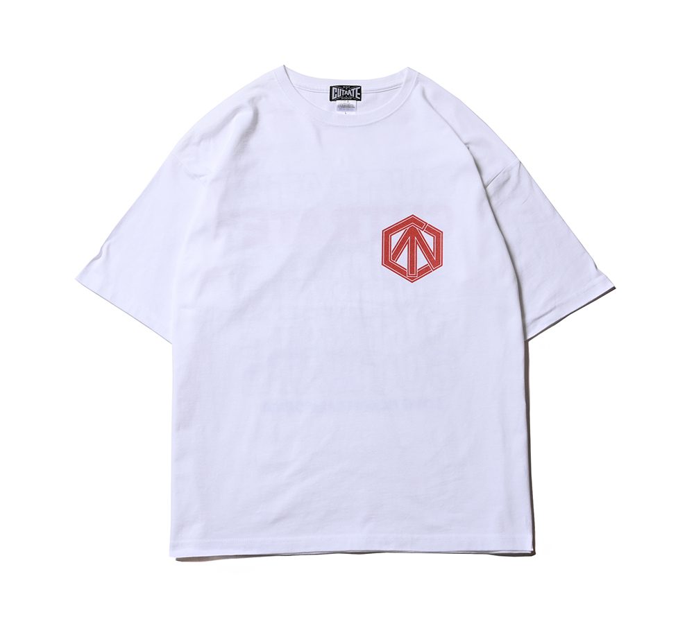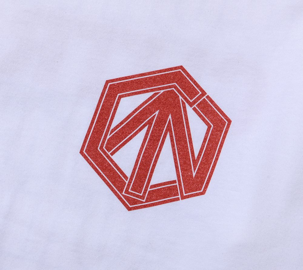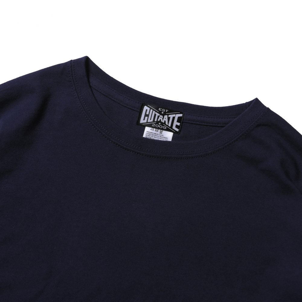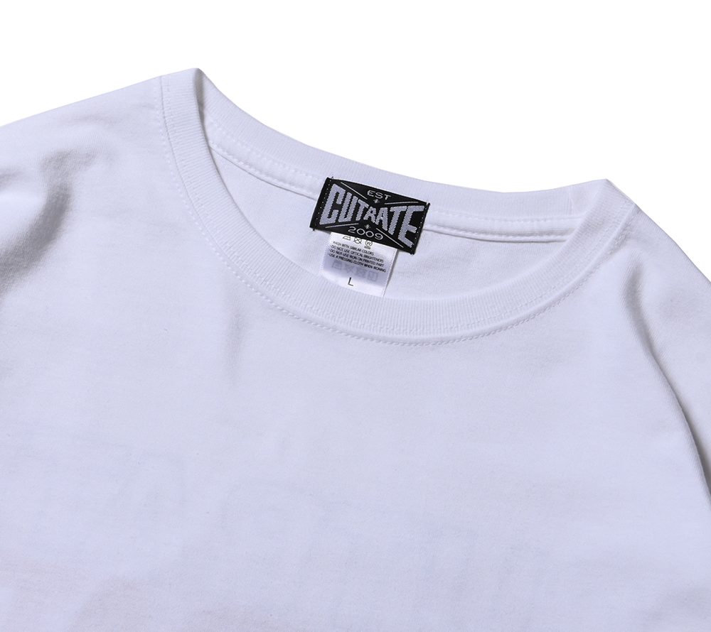 フロントバッグにCUTRATEのイニシャルCRを掛け合わせたロゴを落とし込んだデザイン。バックにはCUTRATEロゴが配列でプリントが入る。シルエットはドロップショルダーで製作。