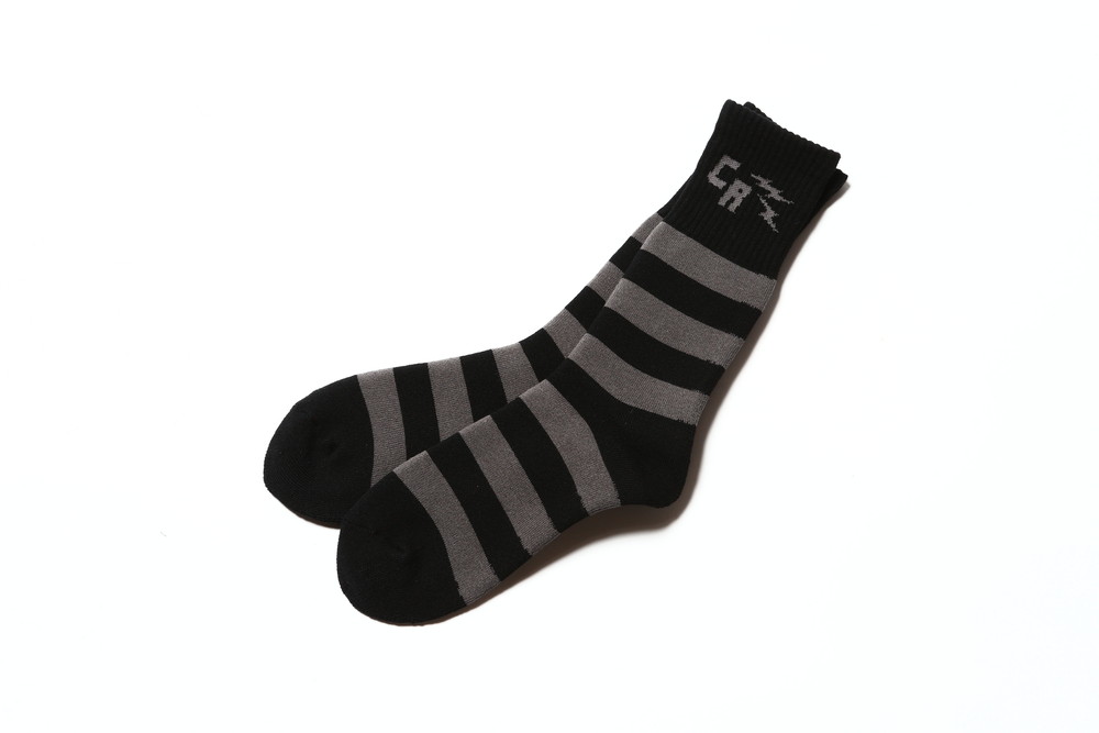 2色ボーダーで編み上げたソックスになります。ストレッチが利いた生地感は穿き心地が良く、ストレス無く着用する事が出来、タフさも兼ね備えておりますので長く着用する事ができます。また、ジャガード編みにてロゴを配しておりますので、良いアクセントになってくれるのではないでしょうか。