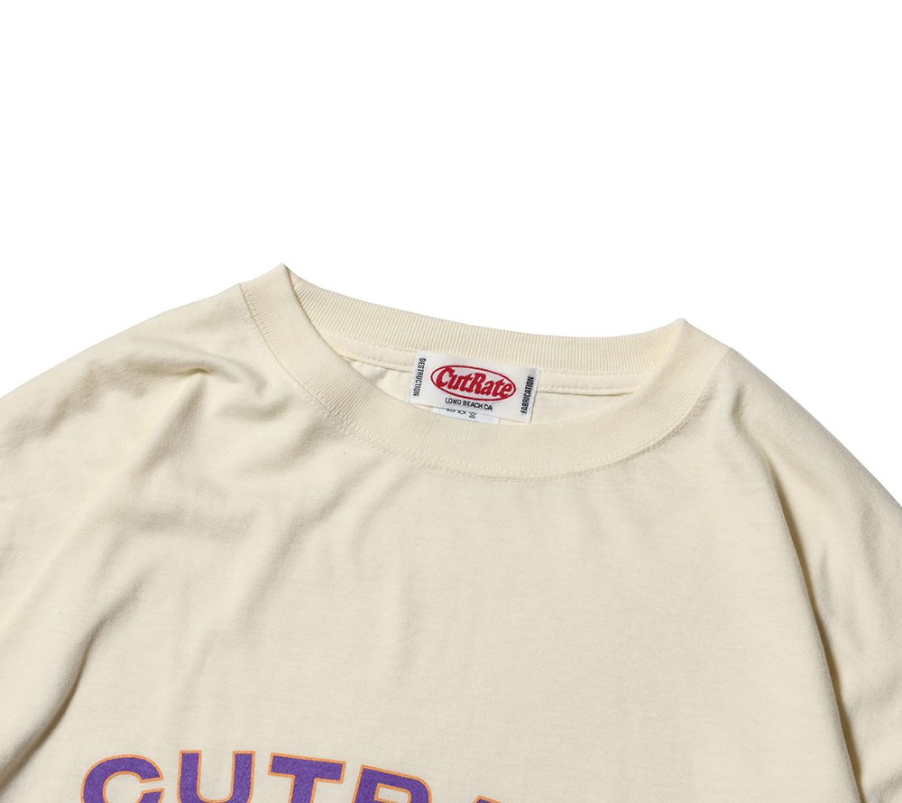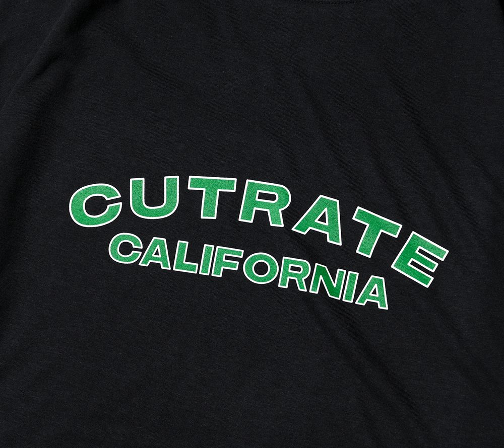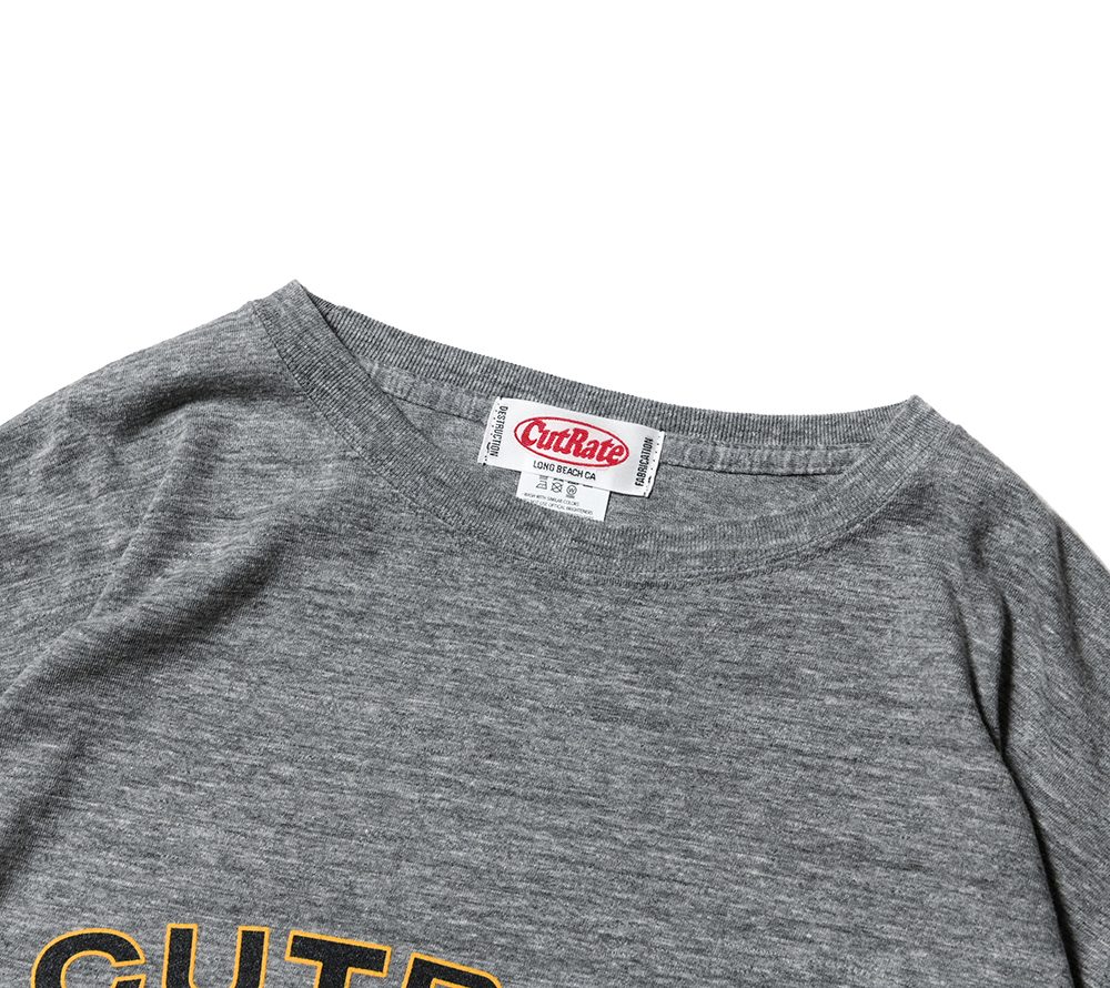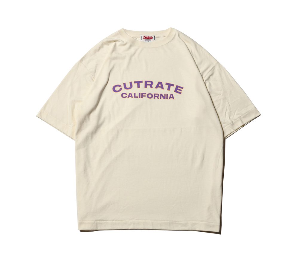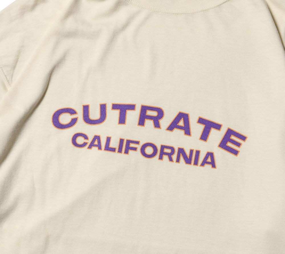 フロントにCUTRATEのブランドネームを落とし込み、カリフォルニアの風を感じさせてくれるようなグラフィックを落とし込んだデザイン。三種類のブレンド糸で製作し、シルエットはドロップショルダーで製作。