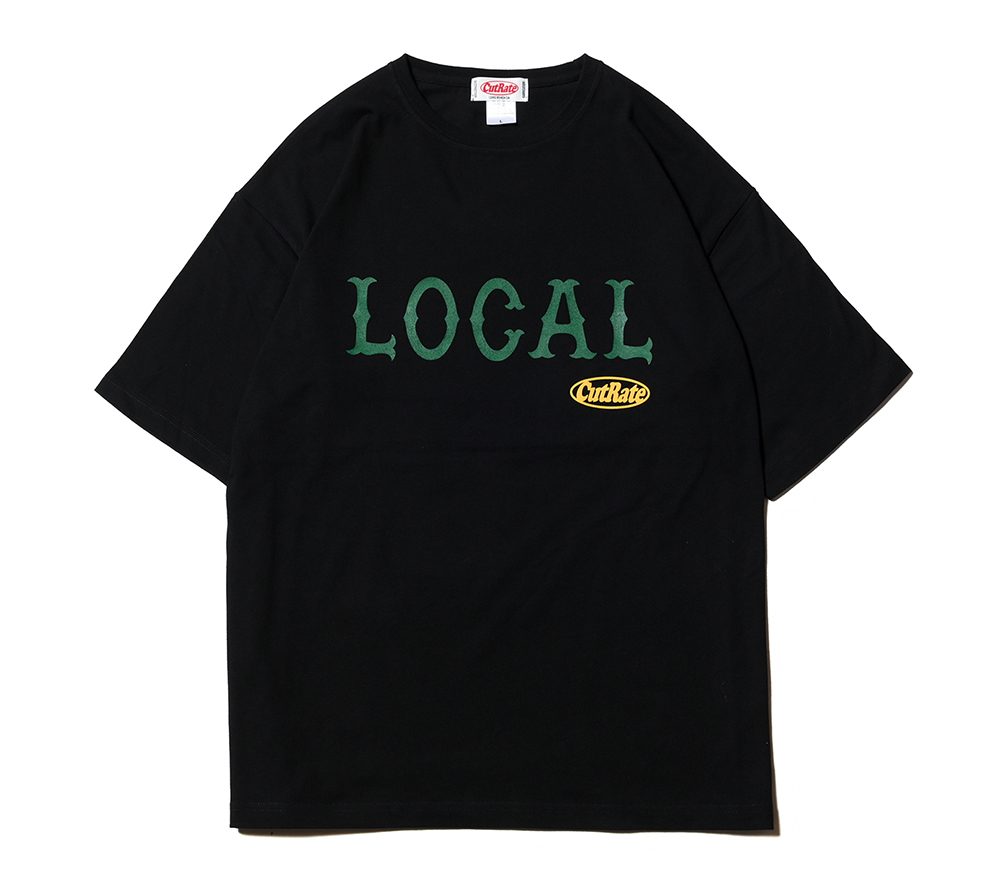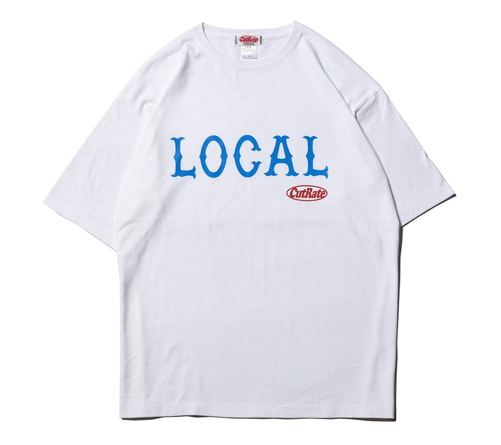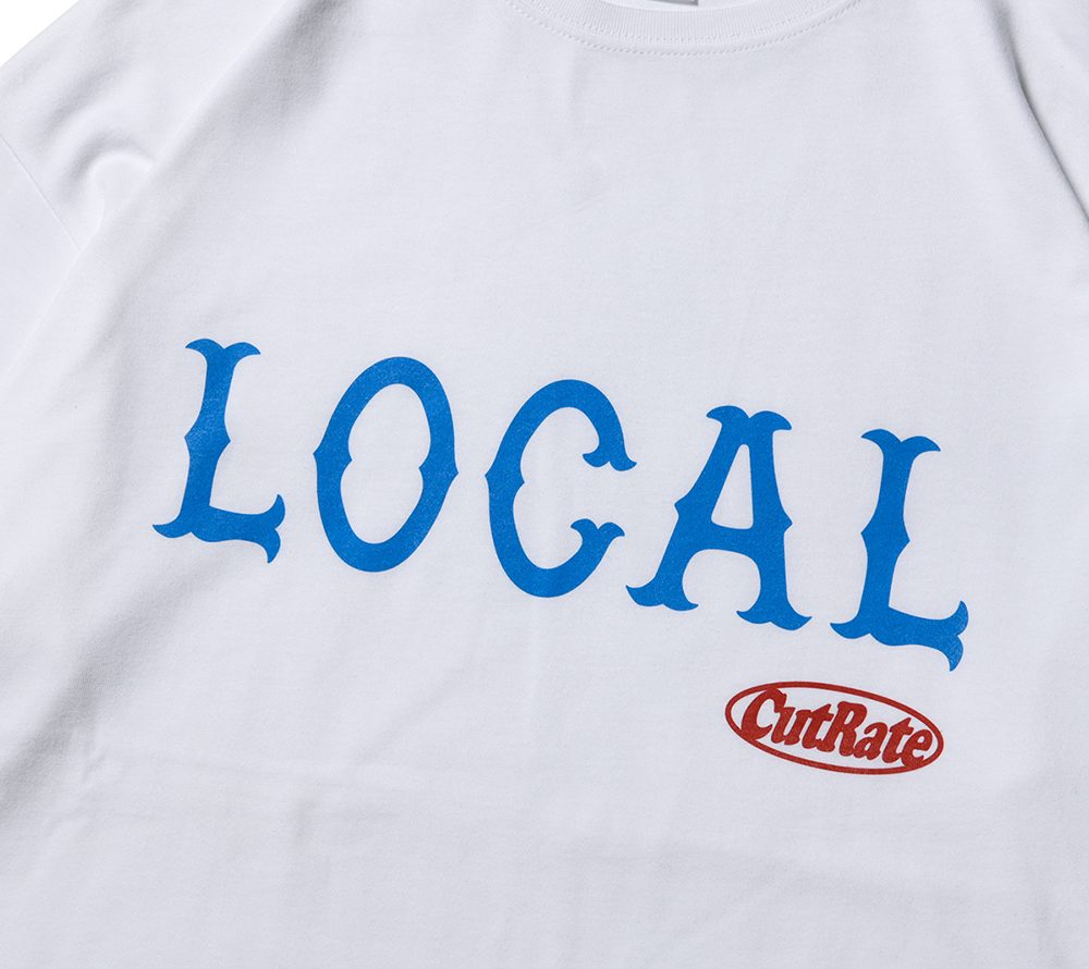 フロントにCUTRATEのアイコンでもある”LOCAL”ロゴを落とし込んだデザイン。 シルエットはドロップショルダーで製作。