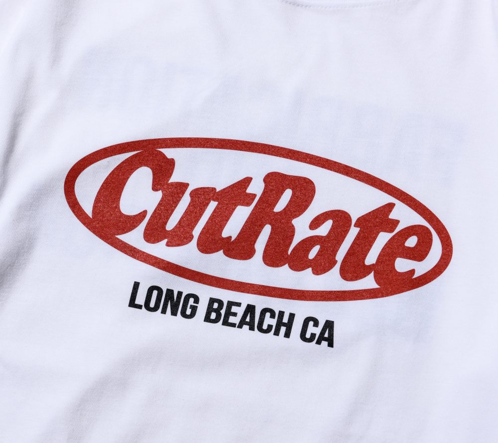 フロントにCUTRATEサークルロゴをプリントで入れたドロップショルダータイプのTシャツ。