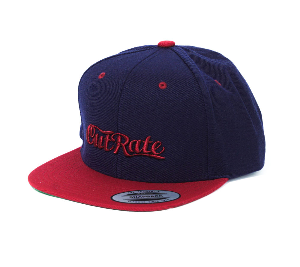 立体刺繍でブランドロゴを配したスナップバックCAP。6パネルフラットバイザー。