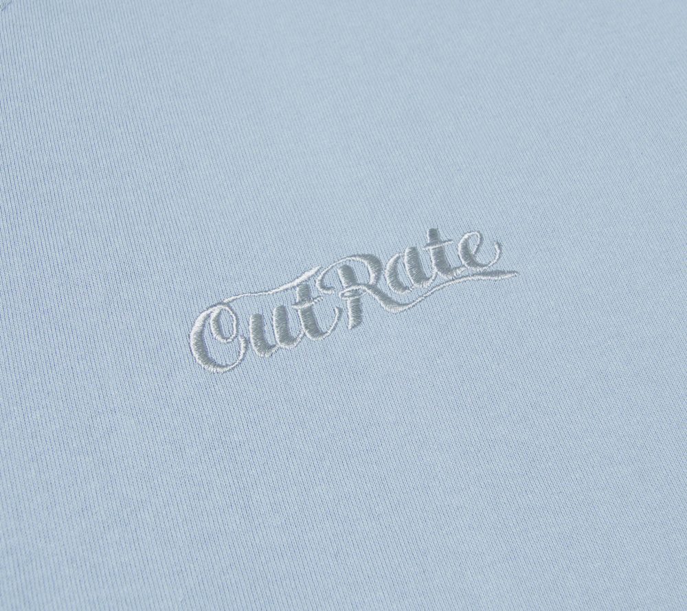 左胸にブランドロゴを刺繍で落とし込んだデザイン。シルエットはドロップショルダーで製作。ボディーは9.1ozのヘビーウェイトボディー。