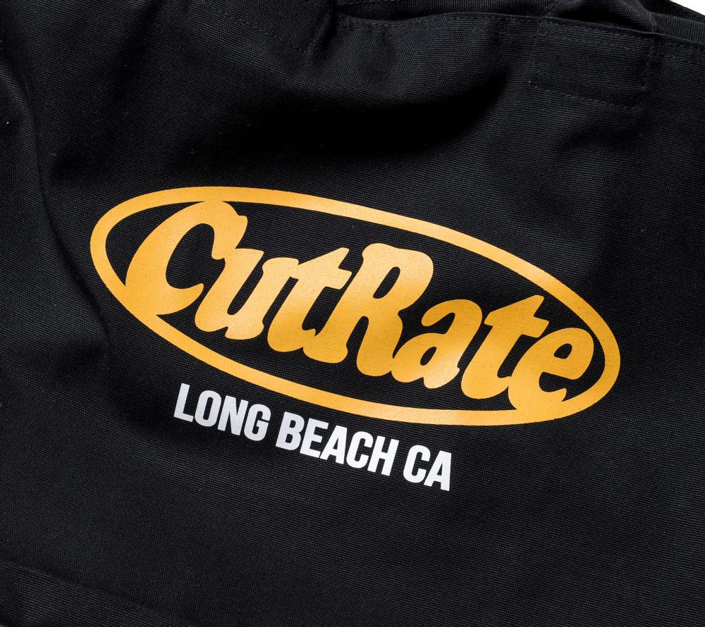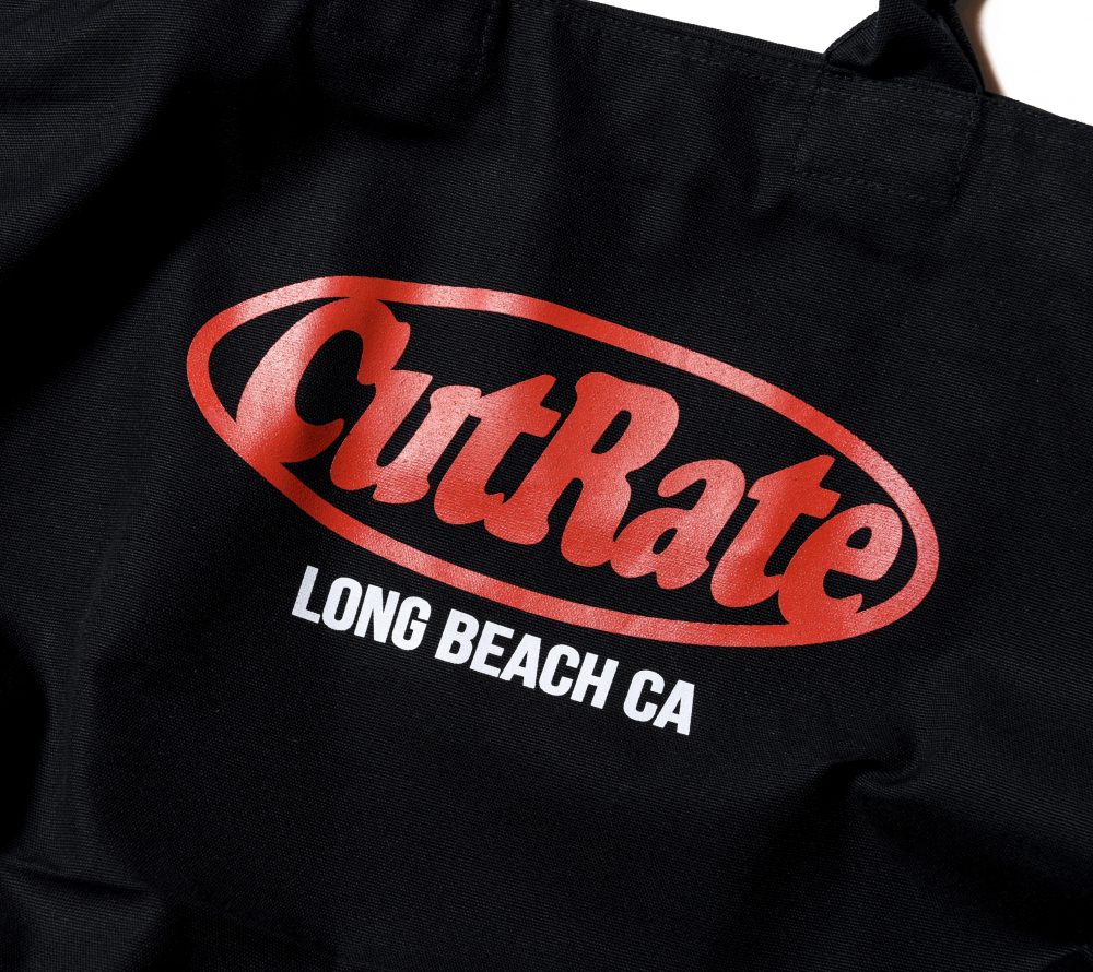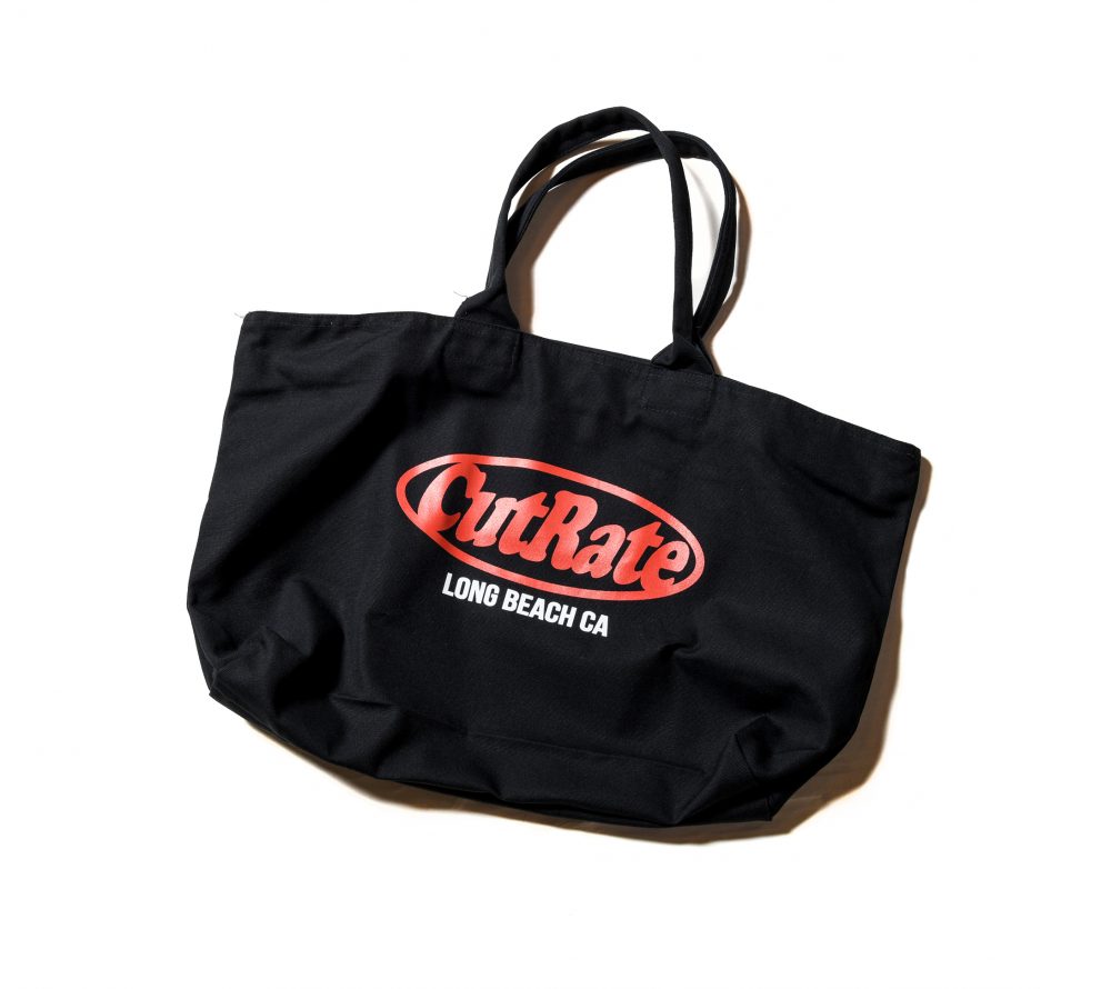 フロントにCUTRATEサークルロゴをプリンで入れたトートバッグ。開け口にファスナーが付く仕様。
