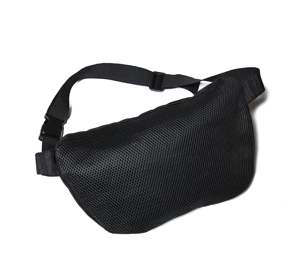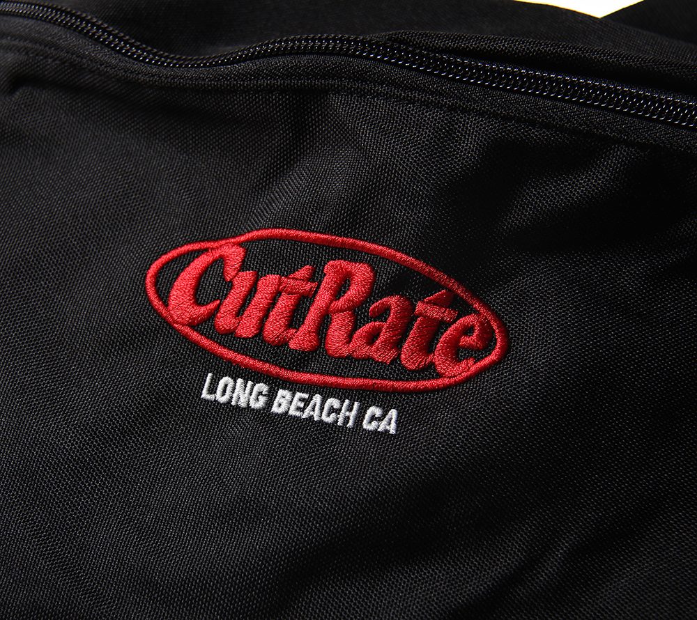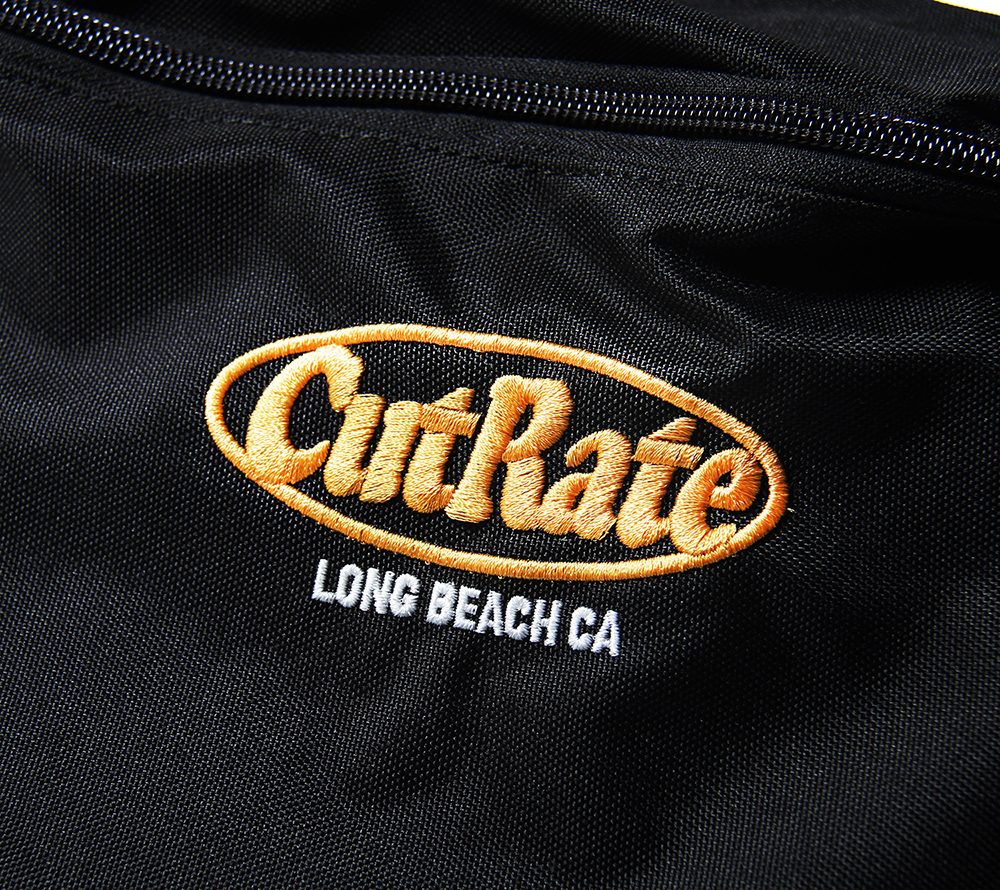 メインロゴのサークルロゴをワンポイント落とし込んだデザイン。ブラックボディーに定番のレッドとイエローのサークルロゴを刺繍で落とし込んだデザインをボディーバッグで製作。