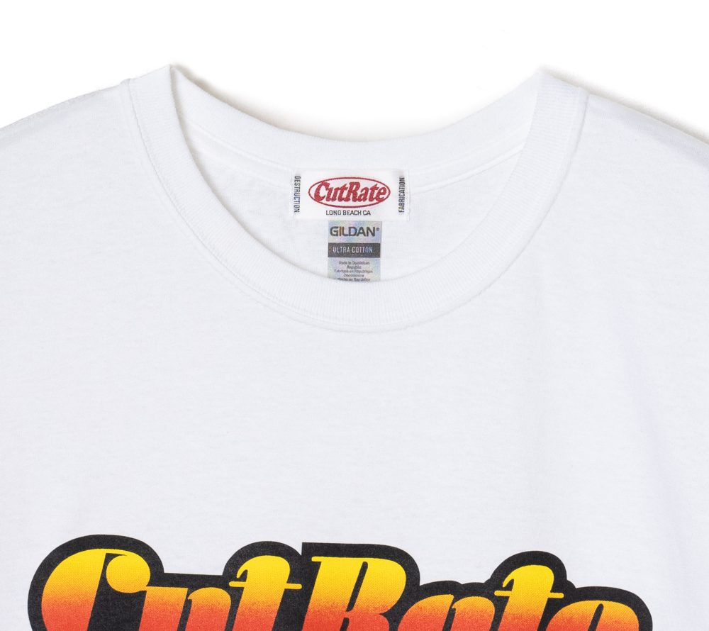 オールドでポップなCUTRATEロゴをフロントに落とし込んだデザインのTEE。ボディーはGILDANのフラッグシップTシャツ6.0 ozのオープンエンド糸を使用した生地はアメリカンテイストたっぷりのザックリとした素材感が特徴。