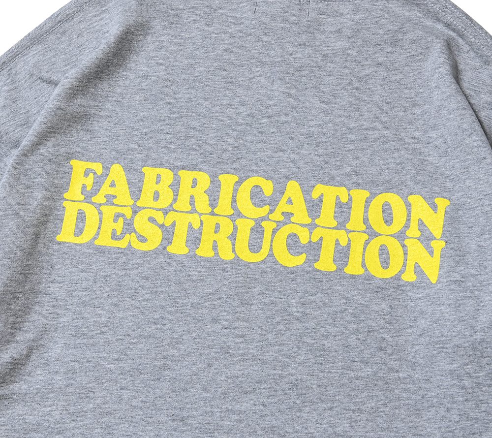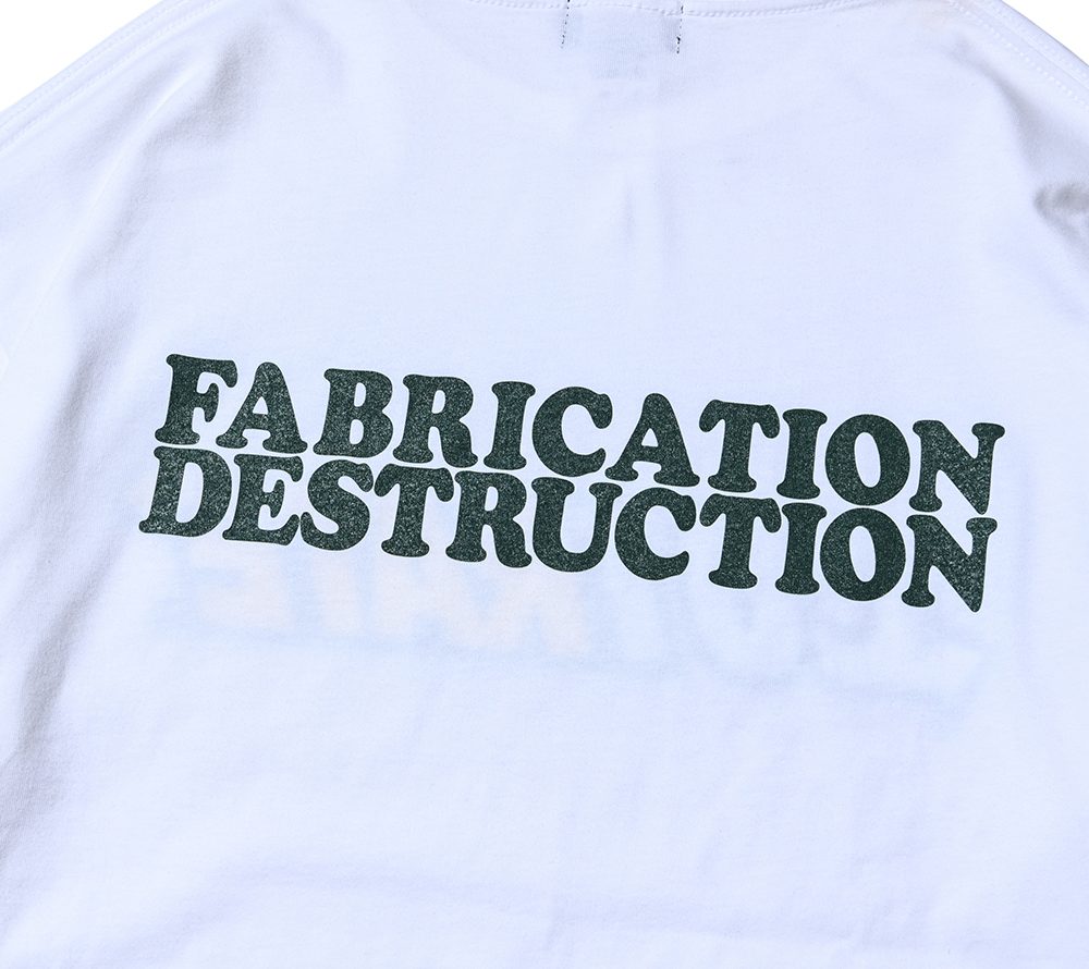 “YOUR WAY”自分の方向性を貫くようなメッセージをブランドネームで表現したグラフィックが光るTシャツ。バックにも”FABRICATION DESTRUCTION”のプリントが入る。シルエットはドロップショルダーで製作。