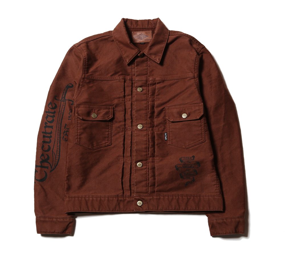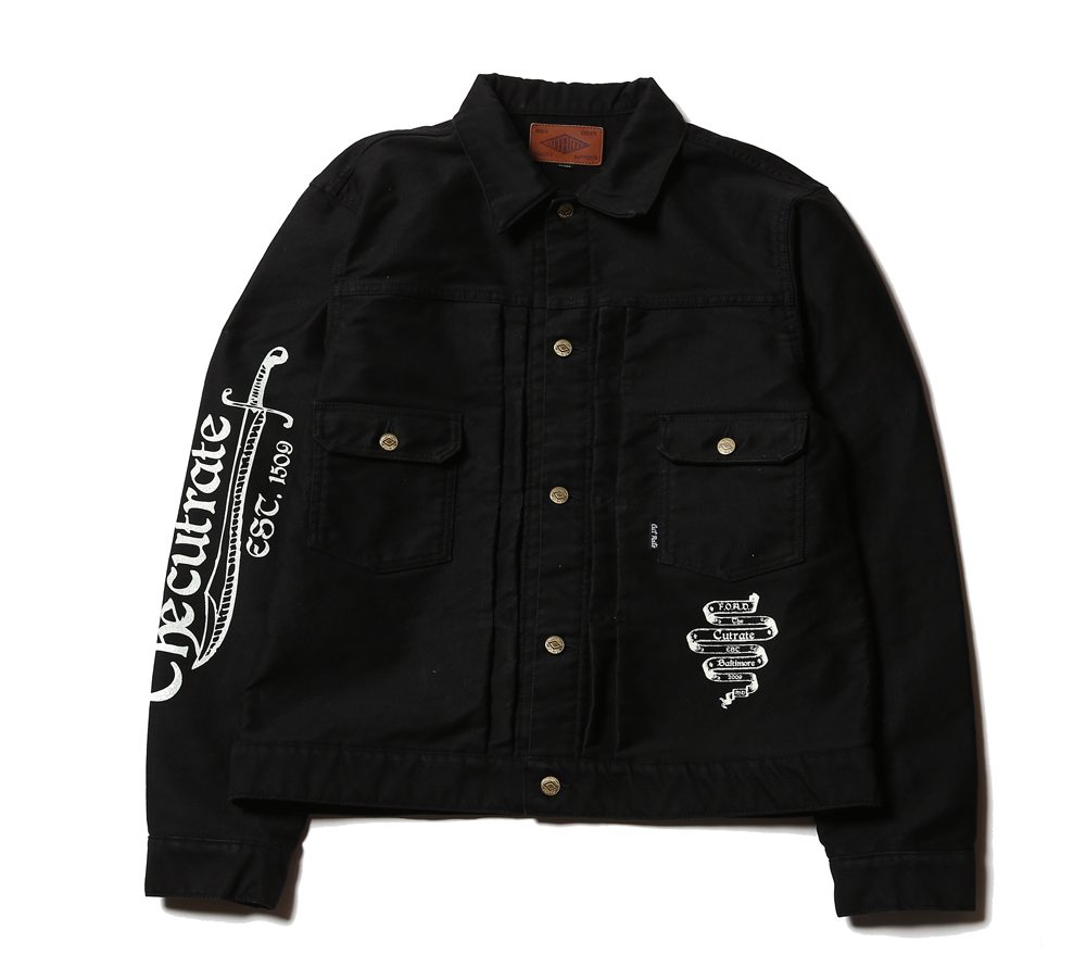 デッキコード生地を使用し、一枚地で作製されたジャケットになります。袖の部分にはCUTRATEらしくナイフのプリントが施されており、また生地には洗い加工を施して製作されております。一枚地となっておりますので、春先に重宝するアイテムではないでしょうか。
