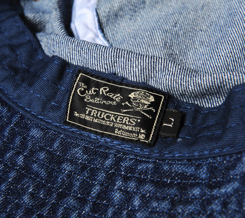 フロントに刺繍を配したデニムバケットHAT。CUTRATEのバックボーンでもある、モーターサイクルカルチャーを匂わすデザインになっています。インディゴとブラックの二色展開です。