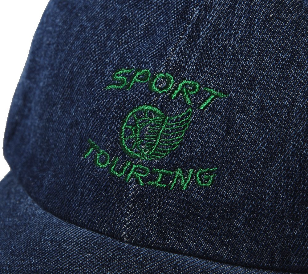 フロントに刺繍を配した浅型のデニムCAP。CUTRATEのバックボーンでもある、モーターサイクルカルチャーを匂わすデザインになっています。インディゴとブラックの二色展開です。