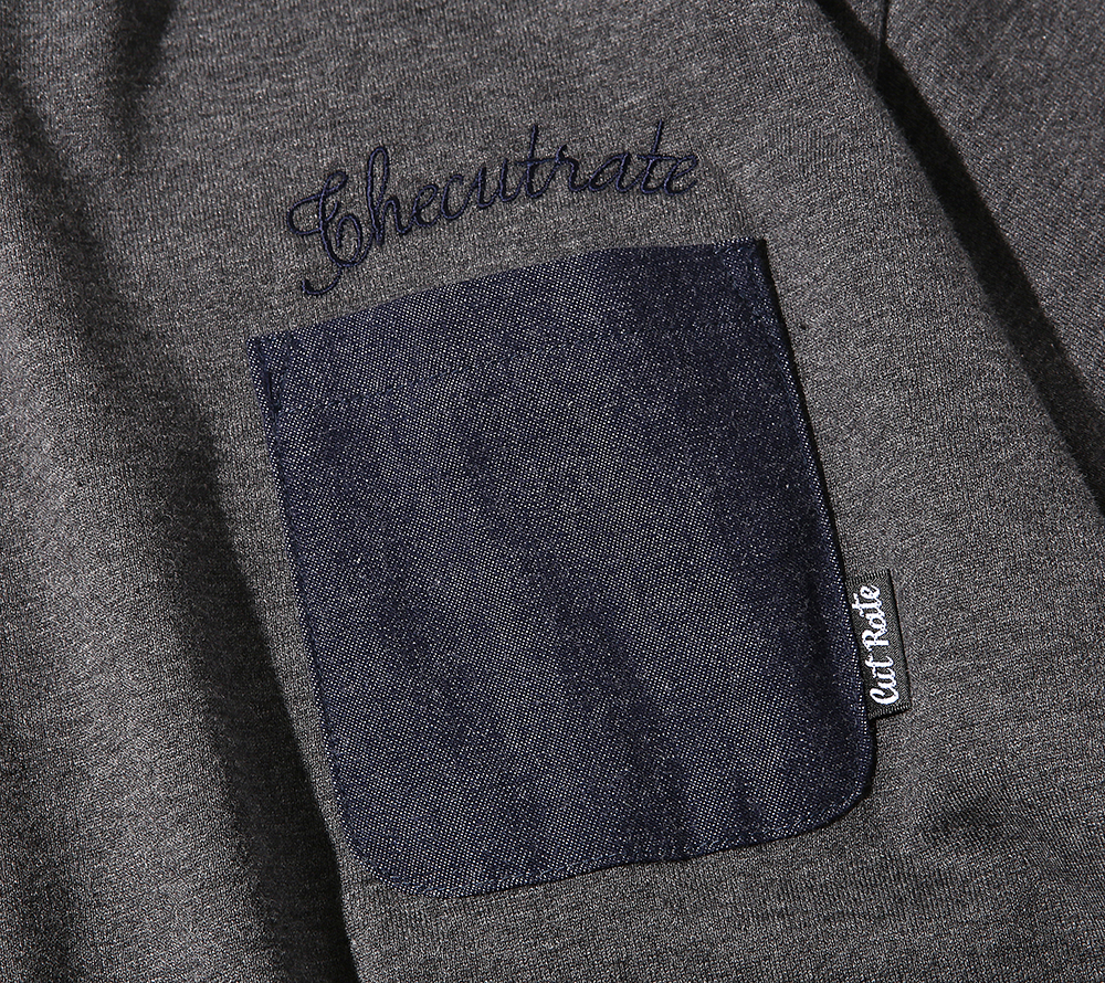 左胸のポケットにデニム地をを使用し、作製されたポケットTシャツになります。ボディーはコットン100%のオリジナルボディーを使用し、着込む程に風合いが出て来ます。シンプルなディテールとなっていますが、デニム地のポケットとボディーの経年変化を存分に、楽しんで頂けるのではないでしょうか。また、ポケット上にはワンポイントで刺繍が入り、雰囲気良く仕上がっております。