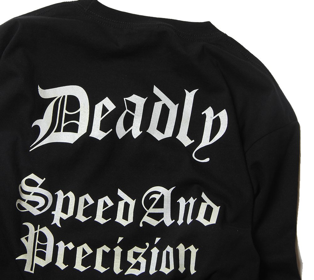 コットン100%ボディーで製作したL/S Tシャツとなります。ヴィンテージのモーターサイクルTシャツからインスパイアされたグラフィックをフロントに採用しておりバイカーテイストが感じられる一枚となっております。また、バックにもメッセージプリントが施されており、これからの時期は一枚で着用しても活躍するアイテムです。
