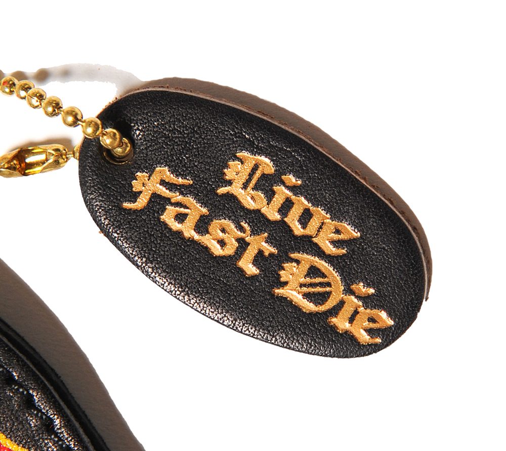 レザー部分にフレームペイントを施したキーリング。オーリング部分もオリジナルでフレームの柄を施し、他にはない唯一無二のレザーキーリングに仕上がっています。
