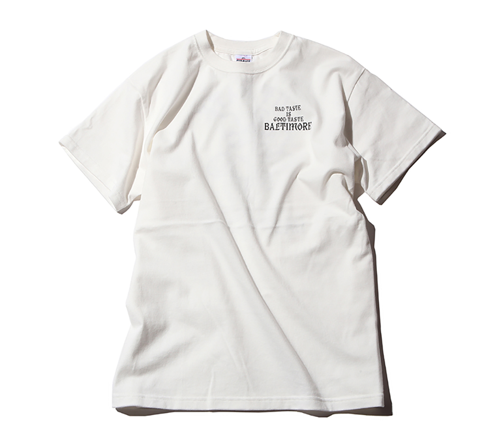 コットン100%のオリジナルボディーを使用したプリントTシャツになります。フロントにはワンポイントでプリントが入るのみのシンプルな作りとなっています。またバックにはインパクトあるプリントが施され、一枚で着用した際にもしっかりと魅せることが出来るのではないでしょうか。また、コットン100%のボディーは着込む程に風合いが出て来ますので、経年変化も楽しめるアイテムになっております。