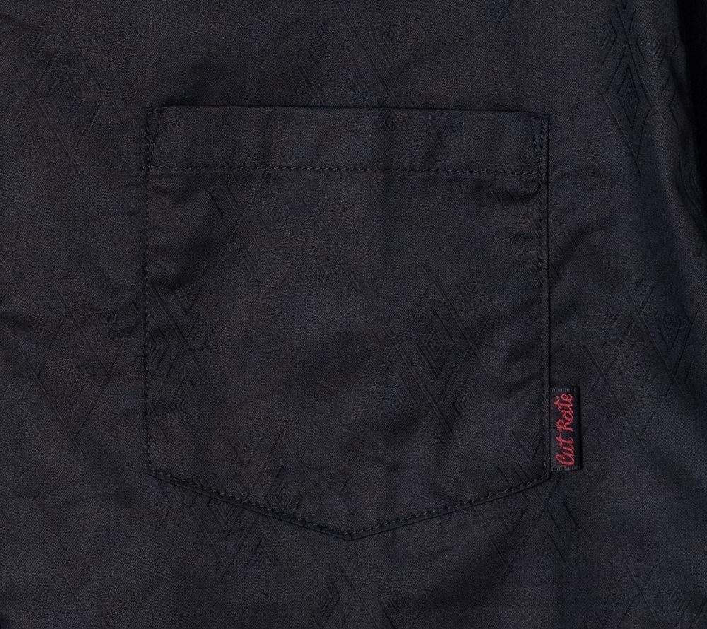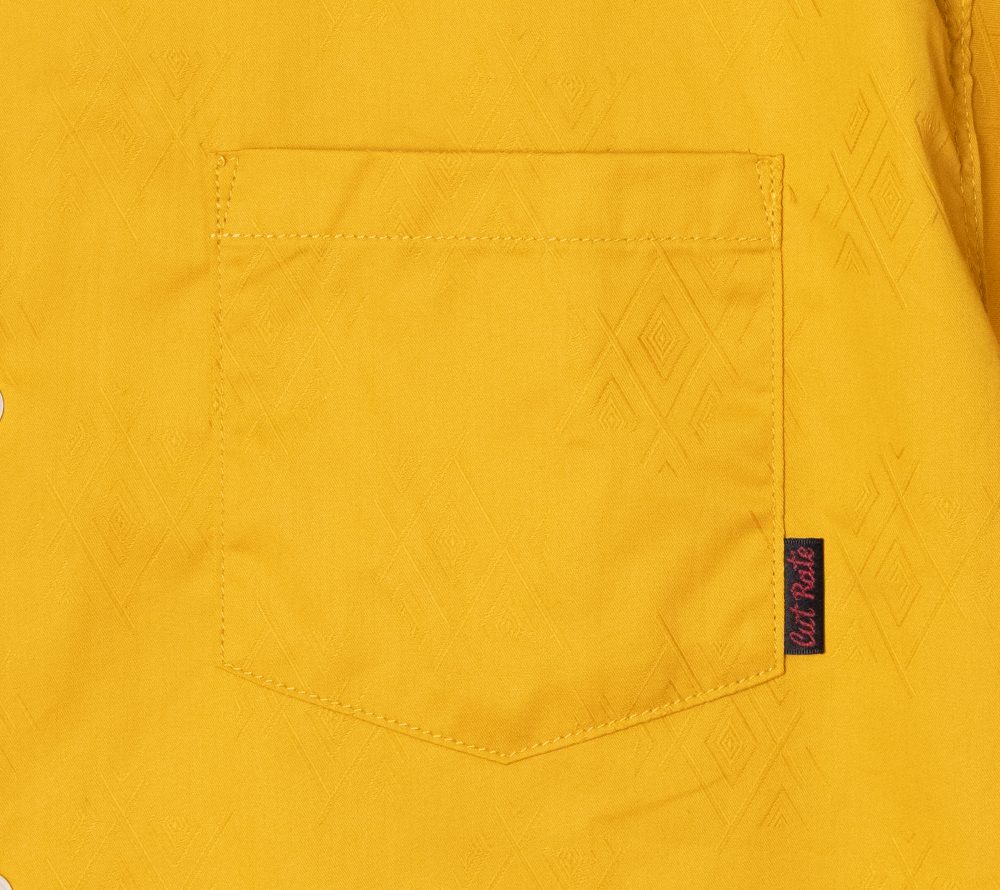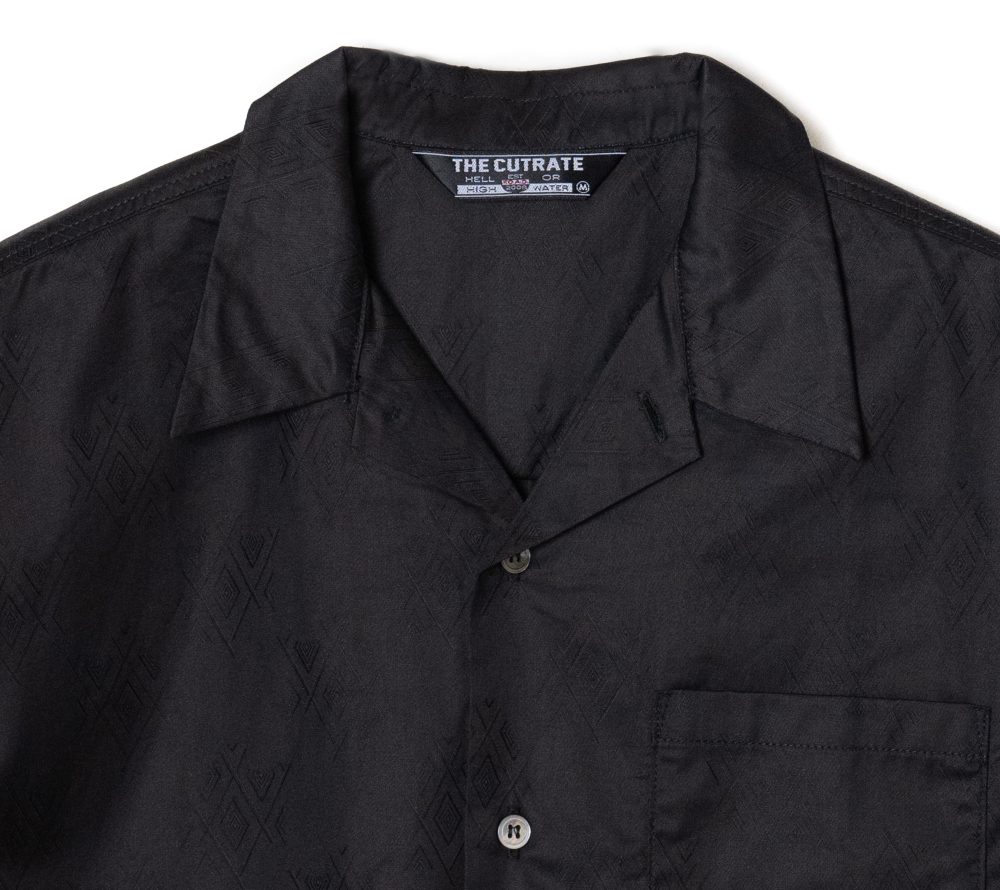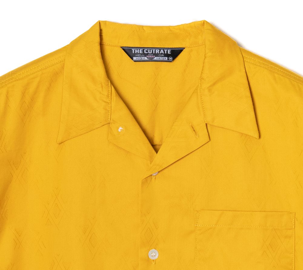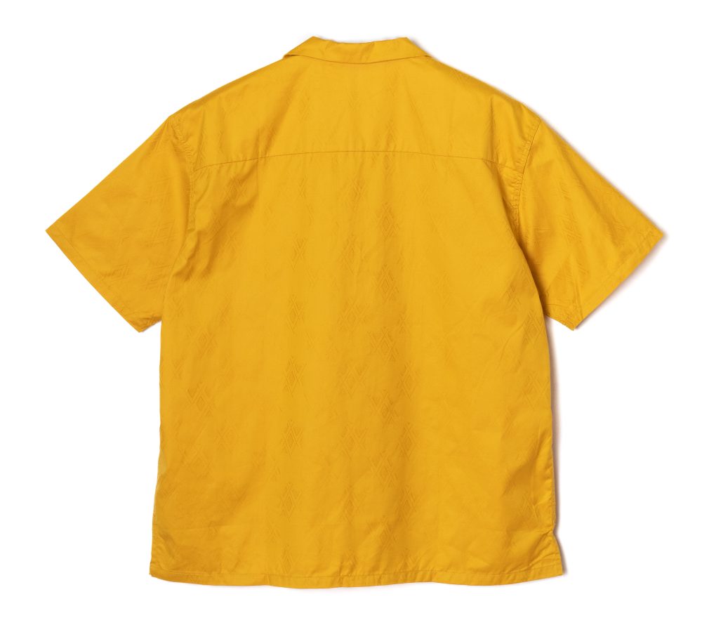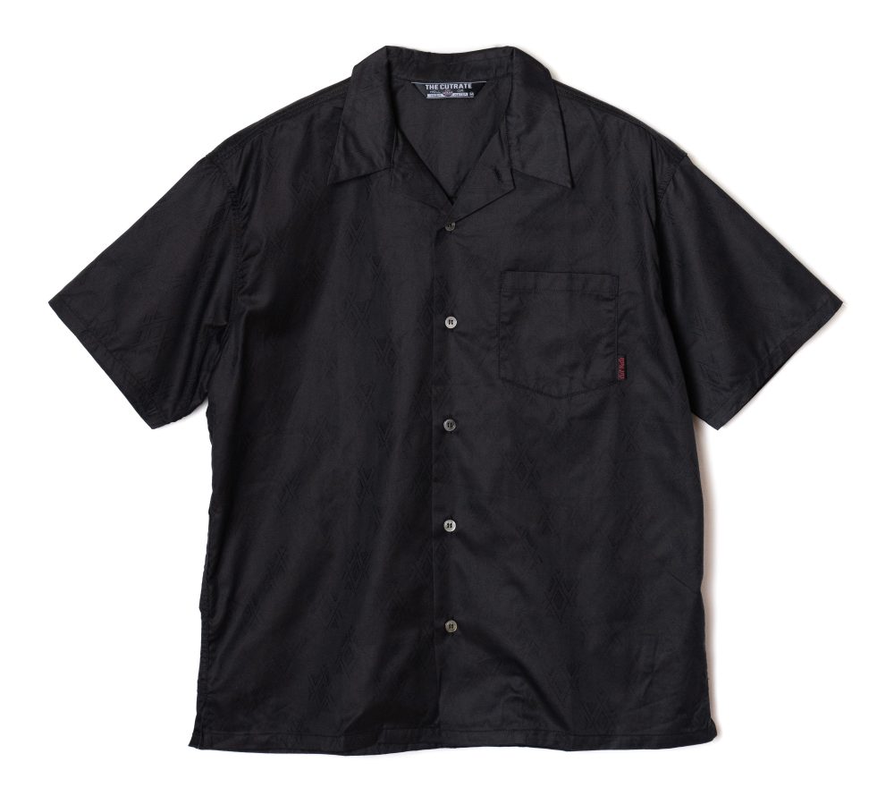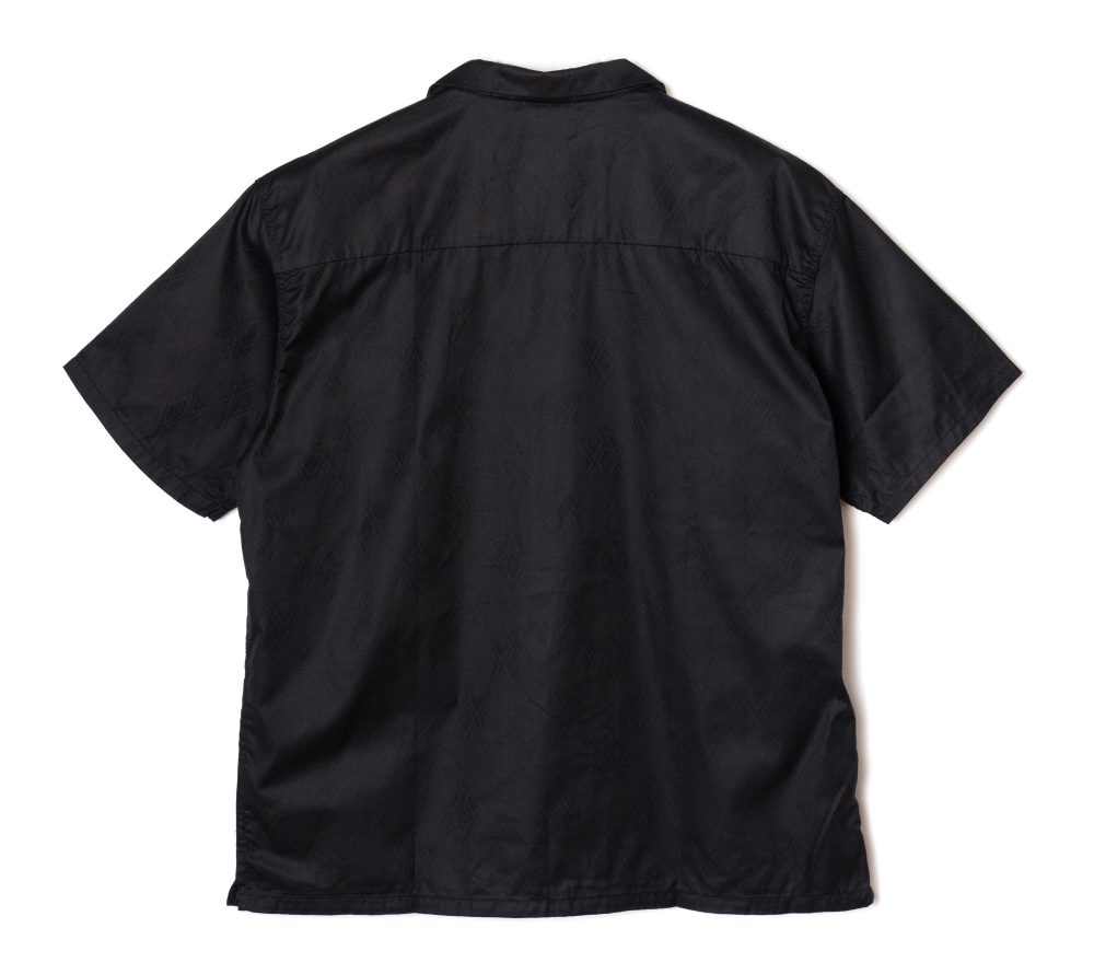 ジャガード織りで作製されたオリジナル柄のオープンカラーS/Sシャツ。