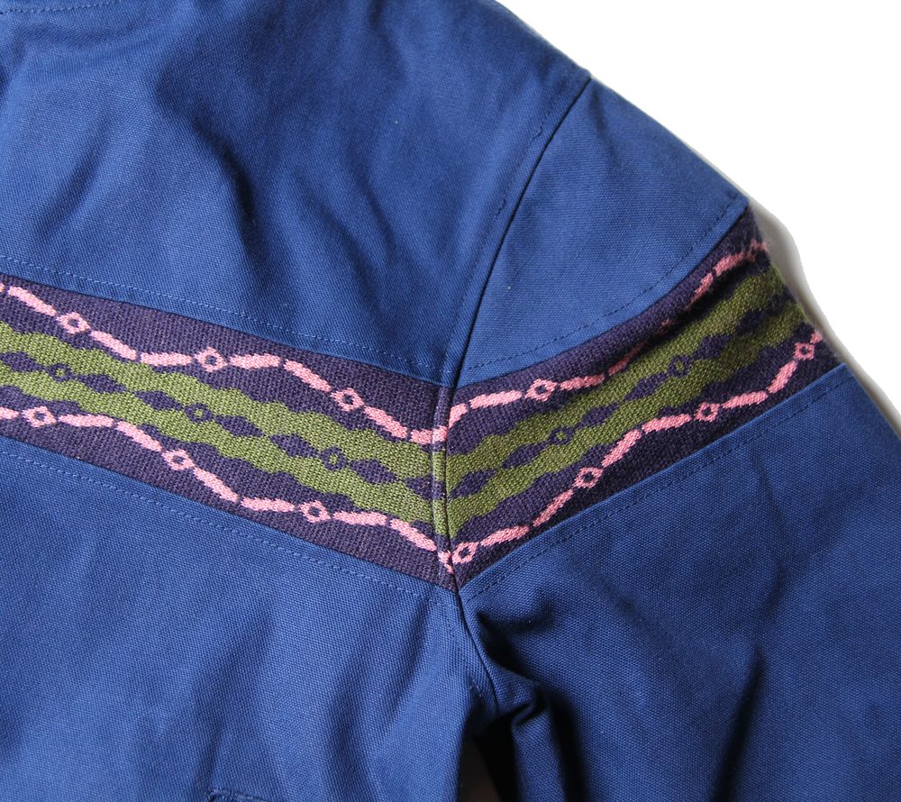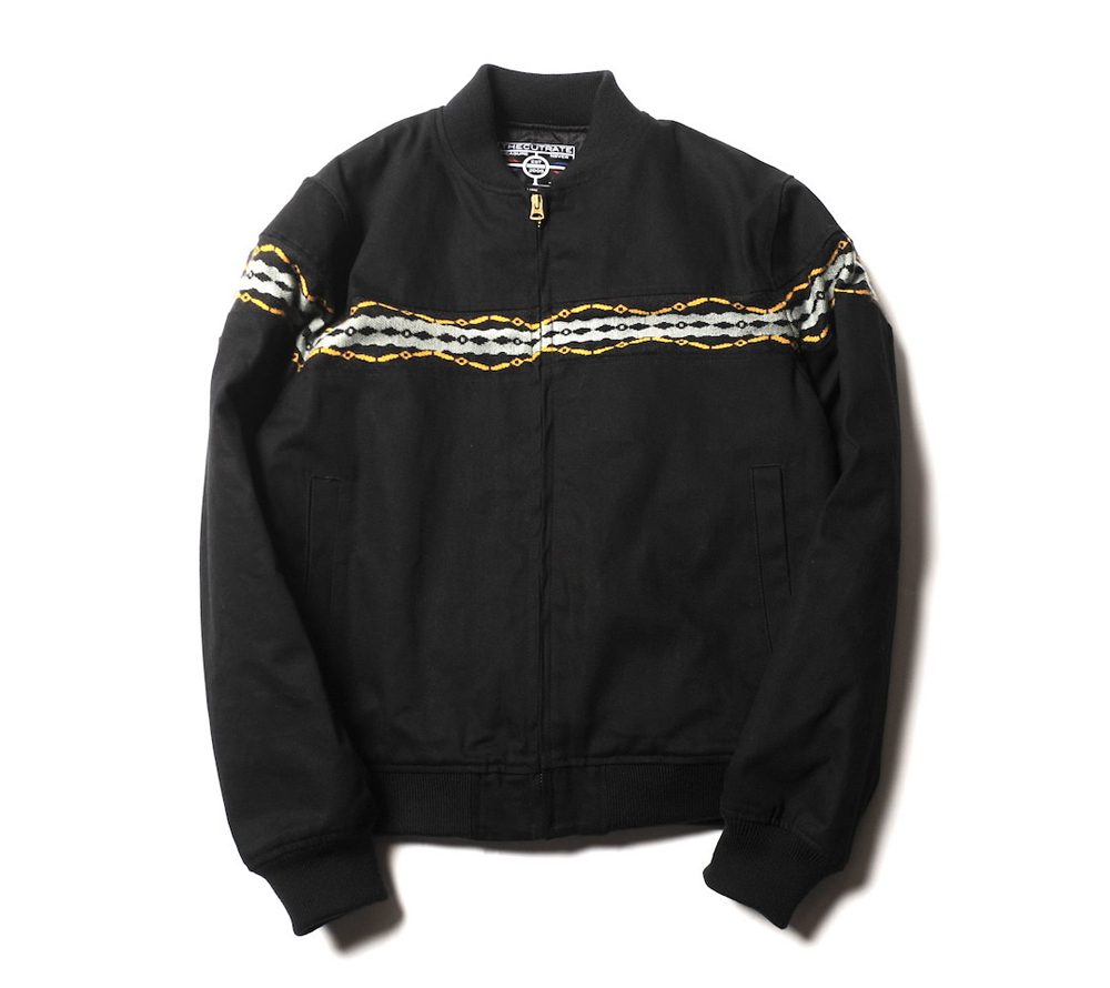 ジャガード織りにて製作したオリジナルのリブ地で、身頃から腕にかけて切り替えを施したジャケットです。襟や裾などにリブが付いた、MA-1ジャケットやタンカースジャケットの様な王道ジャケットを、ジョッキージャケットの様な雰囲気で、切り替えを施した、オリジナリティーある仕上がりになっています。