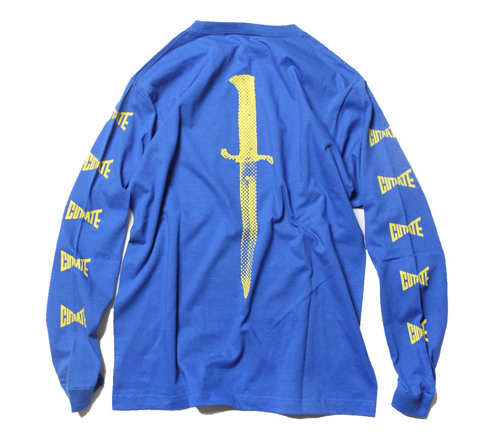 コットン100%ボディーで製作したL/S Tシャツとなります。デザイナーのOLIVER JONESはナイフコレクターで、数十本と収集しており、今回はナイフをデザインソースとしたグラフィックをバックプリントに配しました。フロント、スリーブ部分にはロゴプリントを施しております。発色の良いカラーもリリースされており、これからの時期に活躍するアイテムです。