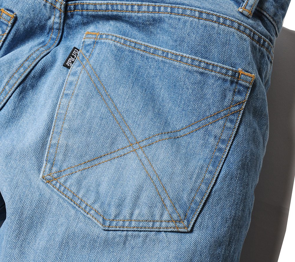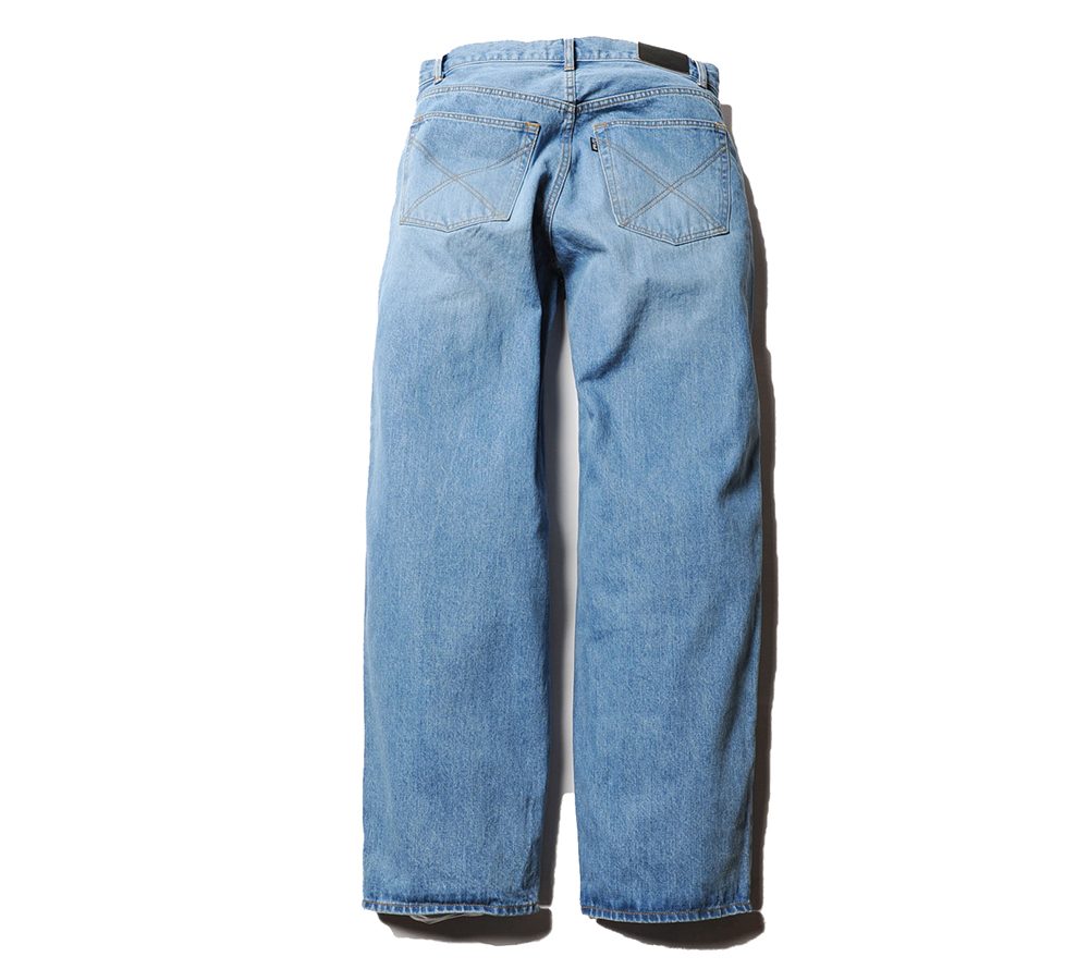 ワイドシルエットで製作したUSEDデニムパンツです。裾周りにかけてテーパードを効かせる事によって、ワイドシルエットながらもスニーカーと合わせる事が出来ます。90'Sのストリートカルチャーでよく見られた、バギーパンツを現代風にアレンジしたシルエットです。