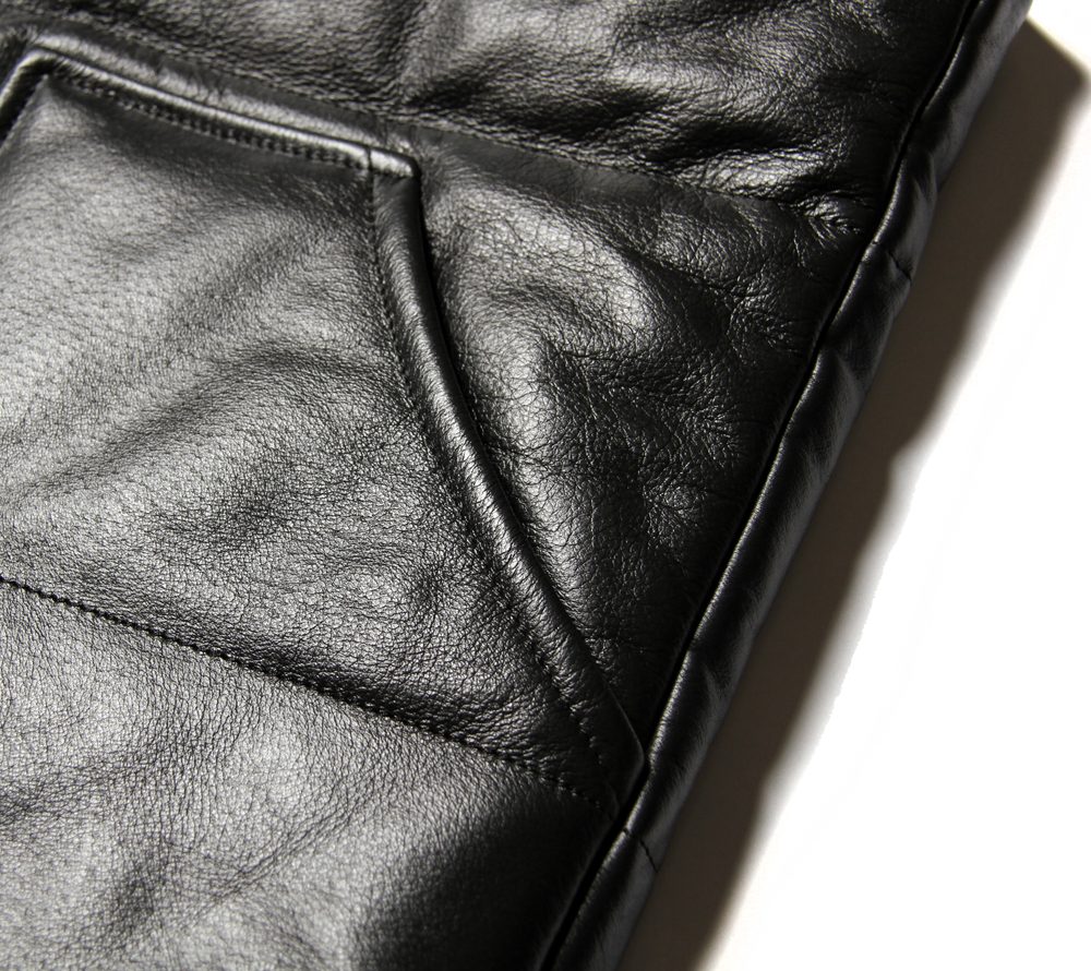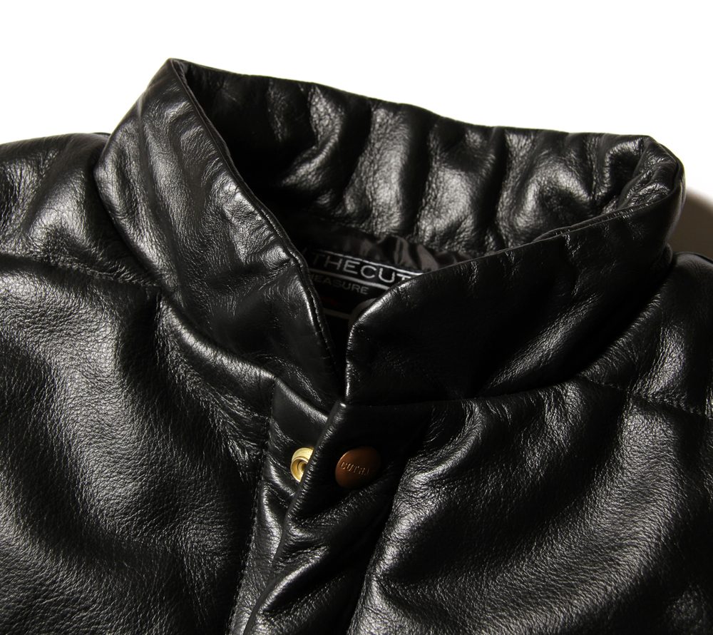中綿を使用したレザーベストです。レザーにはバッファローレザーを使用し、スナップボタンにはオリジナルブラスボタンを採用しております。シャツやパーカー、ジャケットのアウターとしてのレイヤードは勿論ですが、アウターのインナーとして、防寒対策やスタイリングのアクセントとしても活用して頂きたいです。