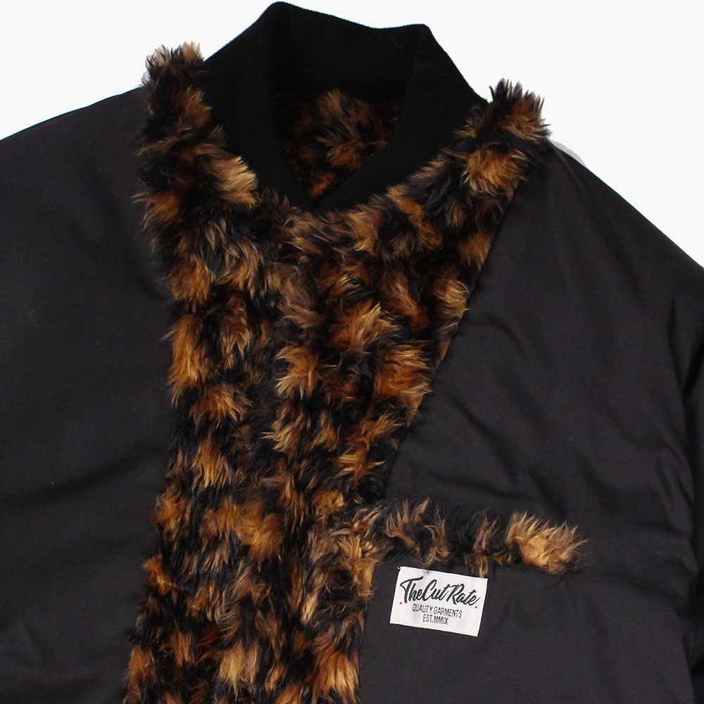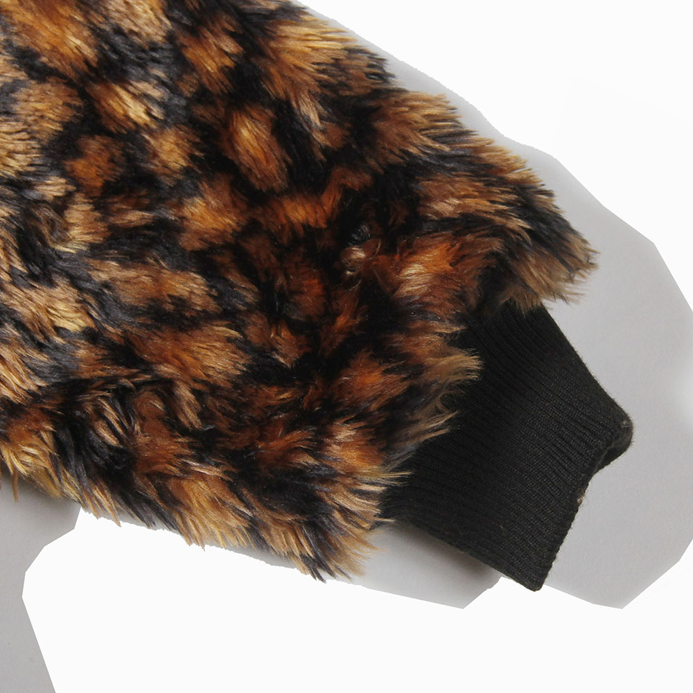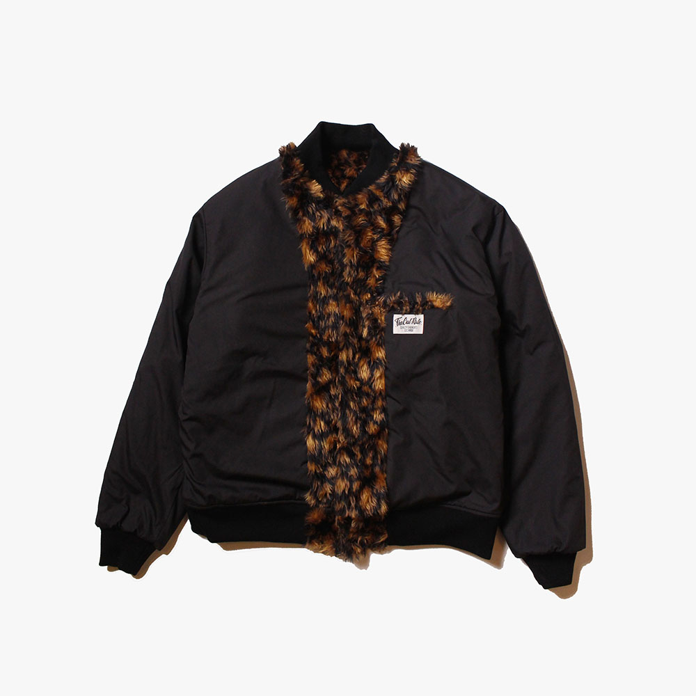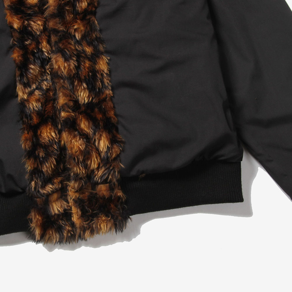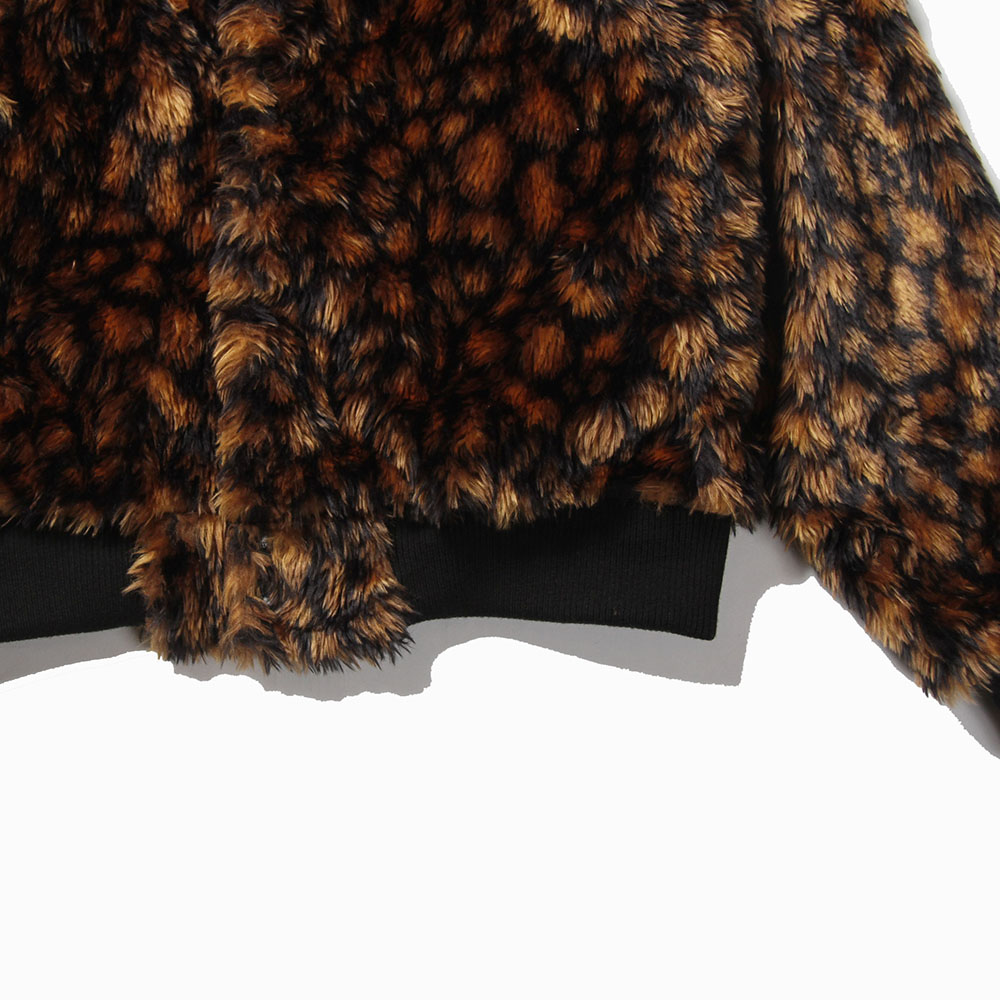 毛足の長い雰囲気のある豹柄のボアを使用したリブタイプジャケット。リバーシブル仕様となっており使い勝手も良いのでは。フロントにはブランドロゴネームを、ヒョウ柄が存在感のある一枚に。