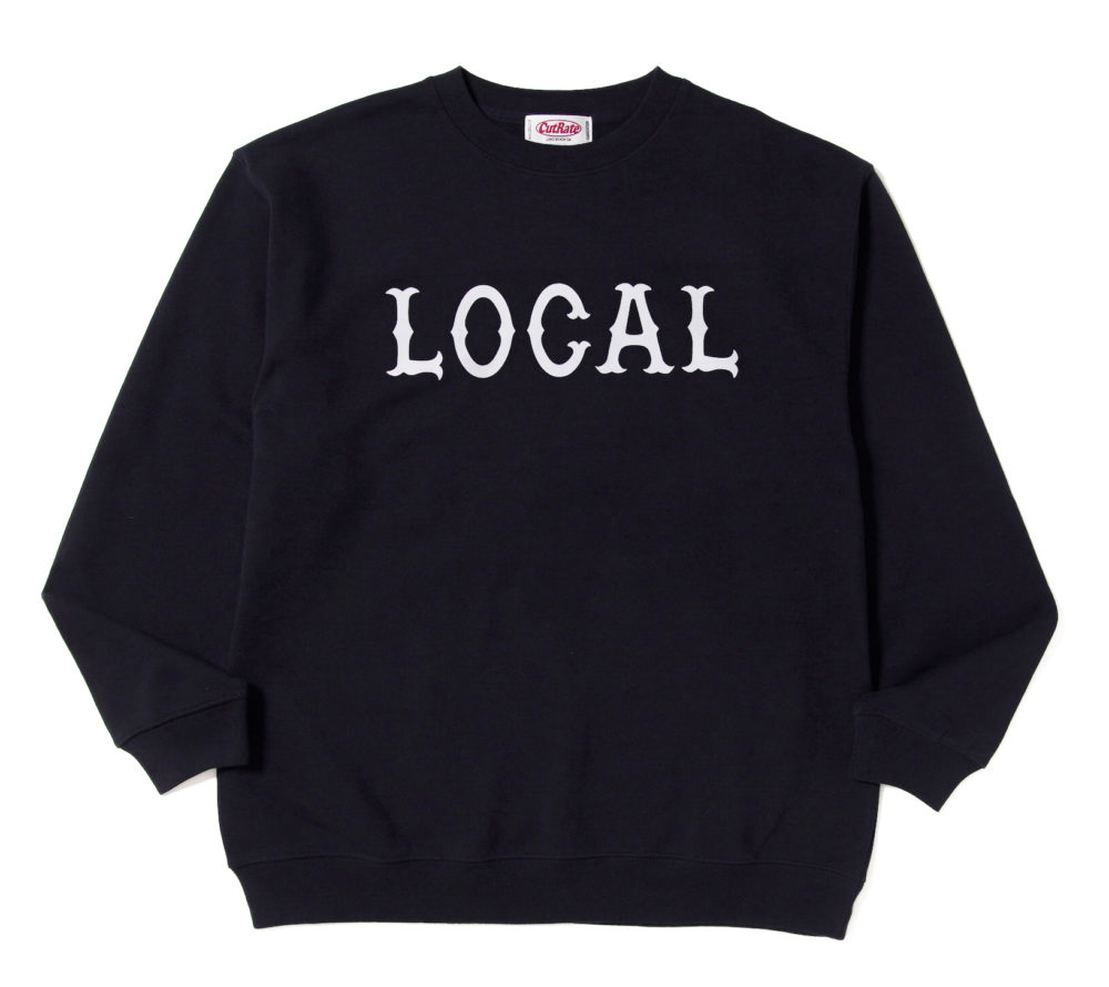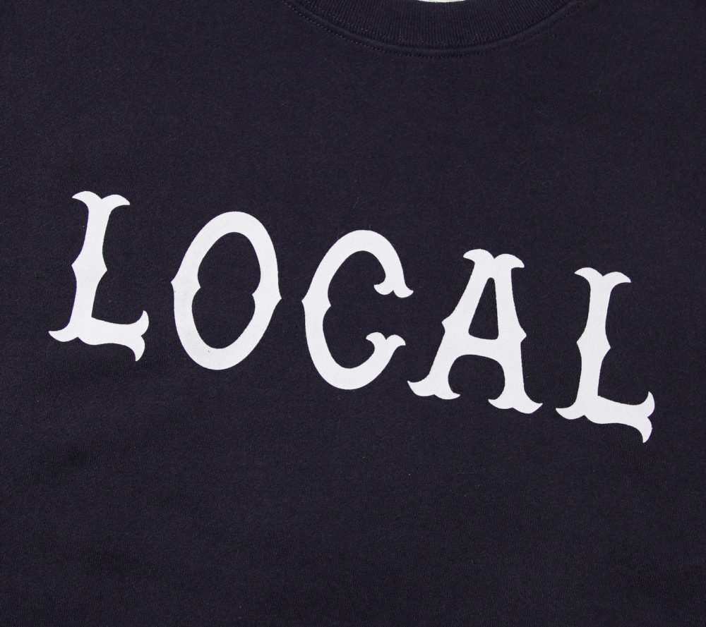 LOCAL ロゴをフロントにプリントで落とし込んだデザイン。裏パイル仕様。