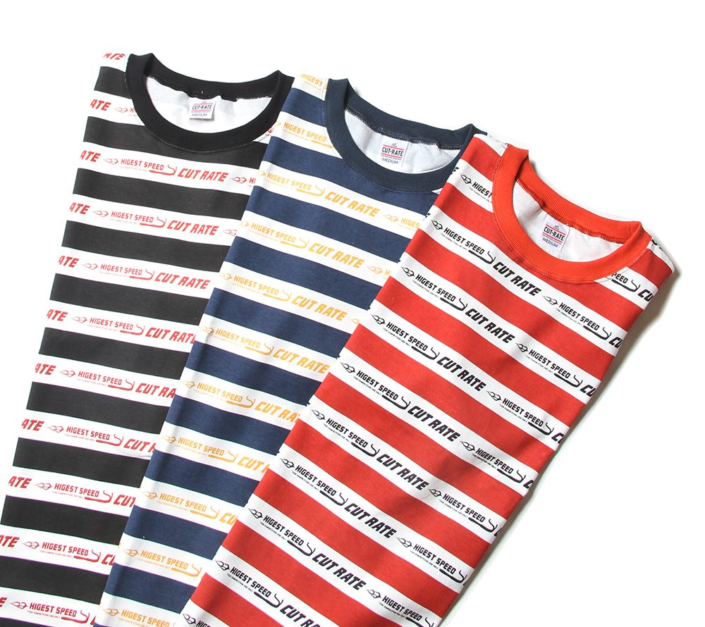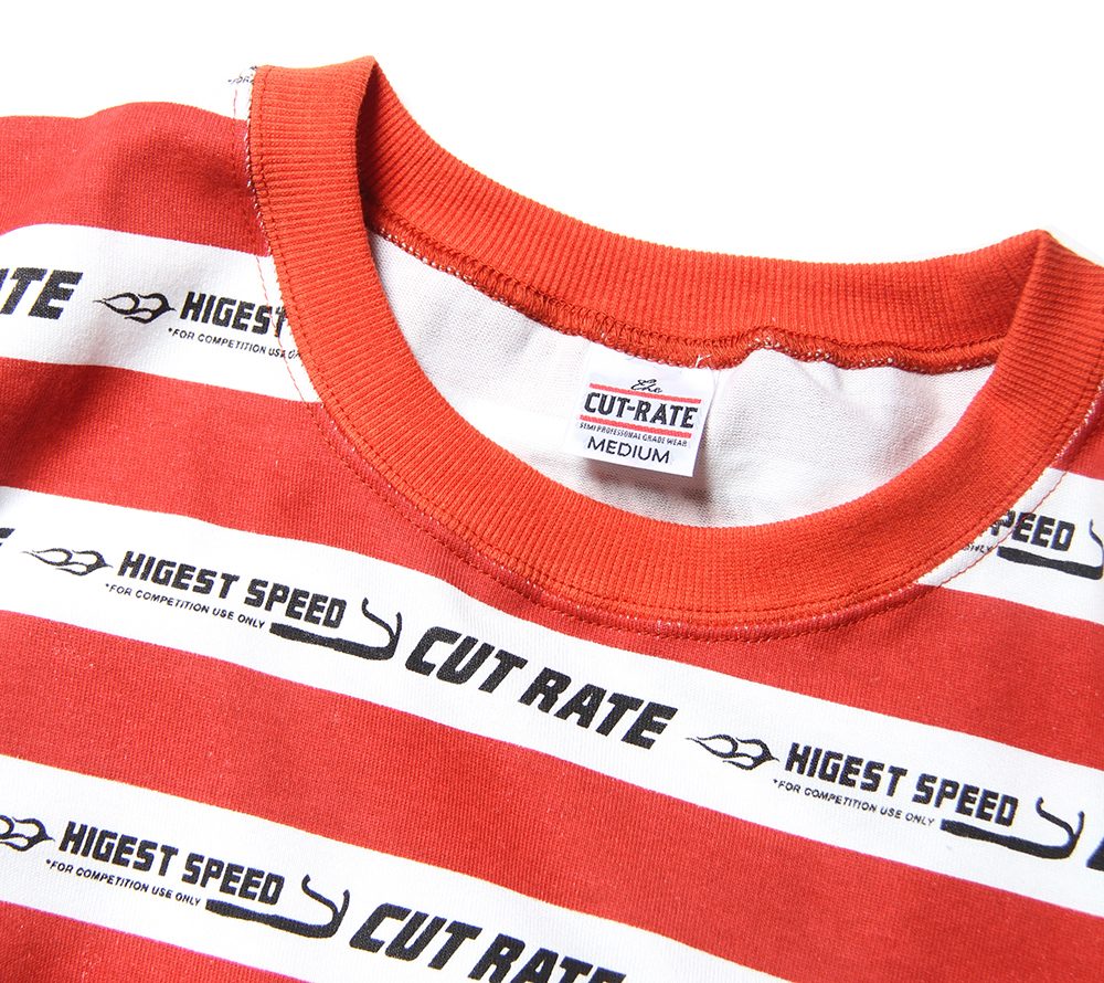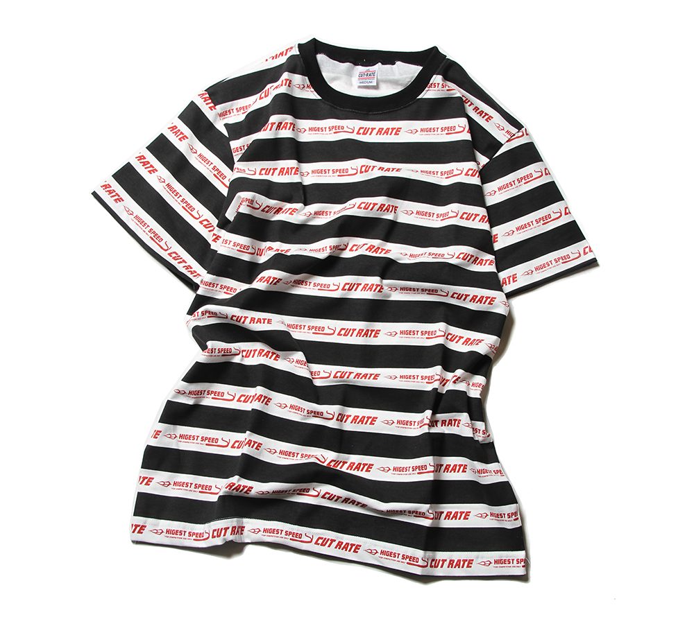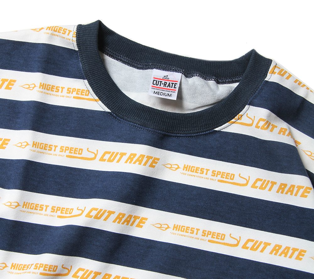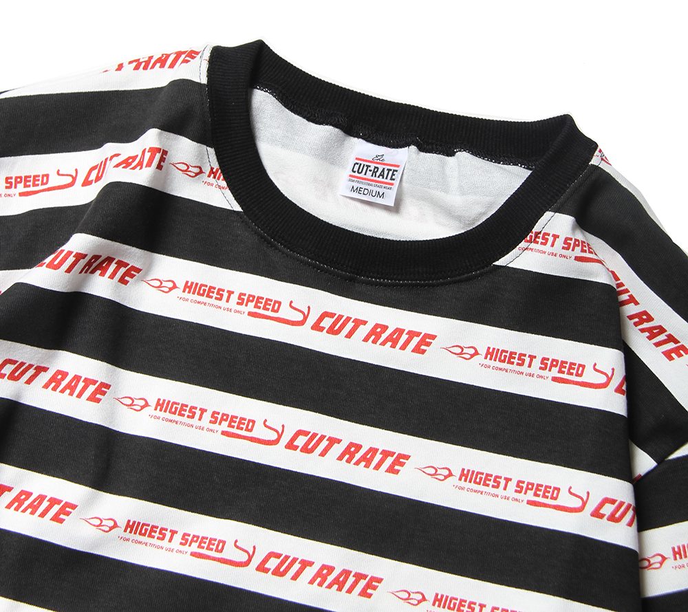 ロゴとサンダーヘッダーマフラーを組み合わせたオリジナルのボーダーTシャツ。CUTATEのアイデンティティーであるモーターサイクルな匂いを表現した一枚。