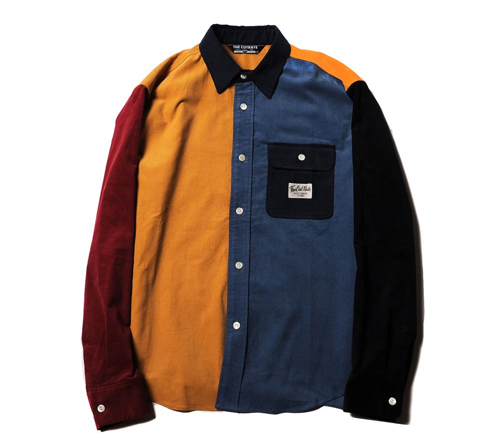細畝のサーマーコーデュロイを使用し製作したL/Sシャツ。違うカラーリングのコーデュロイ素材を随所に使い、クレイジーパターンで仕立てています。アメリカンカジュアルの王道であるコーデュロイシャツを、CUTRATE流にアレンジしたシャツに仕上げています。