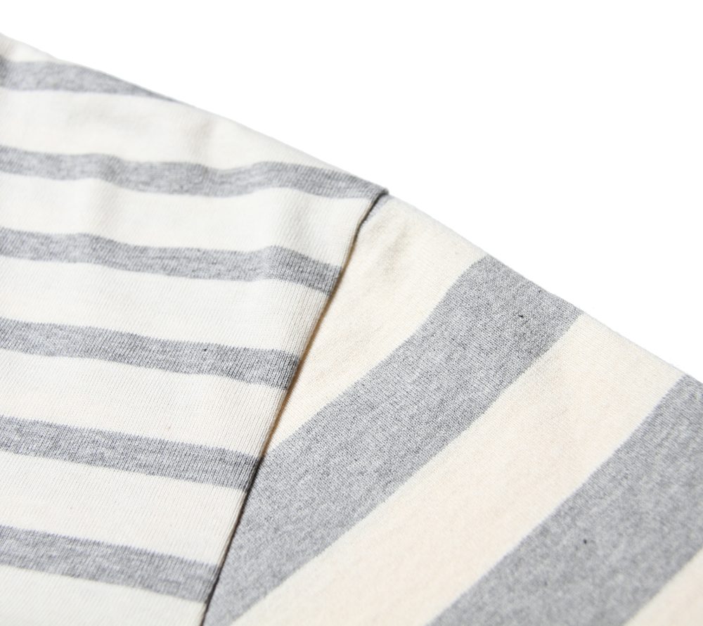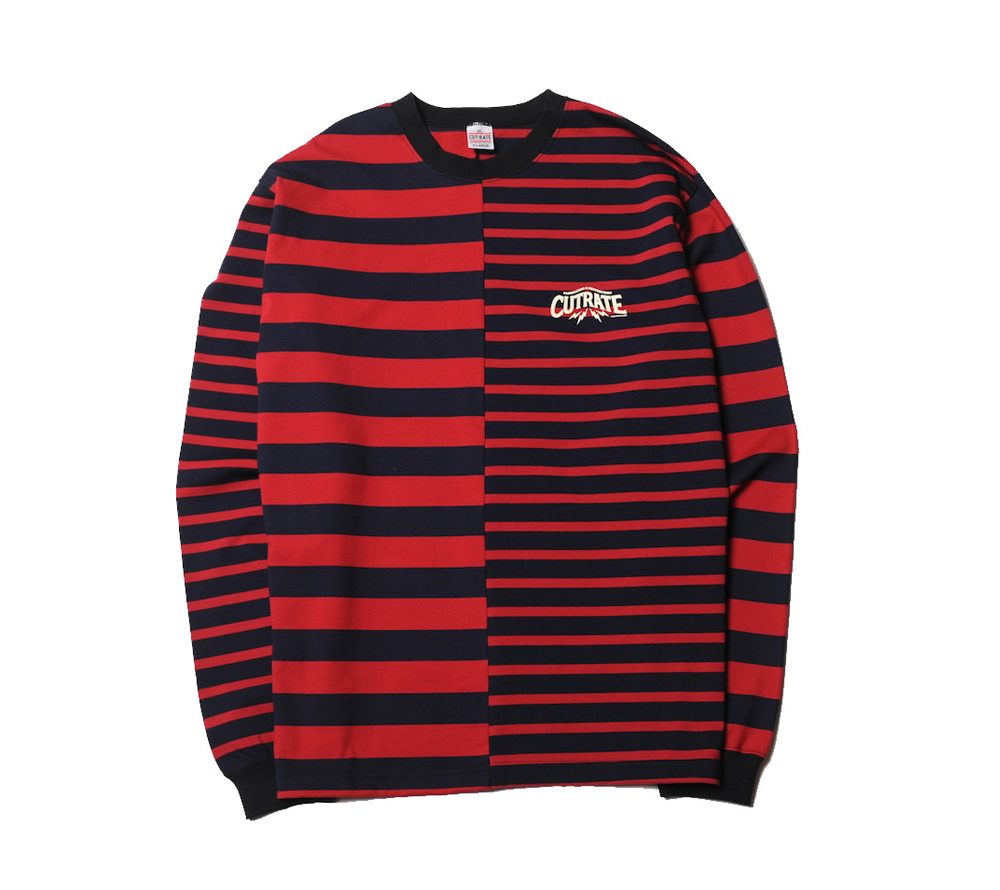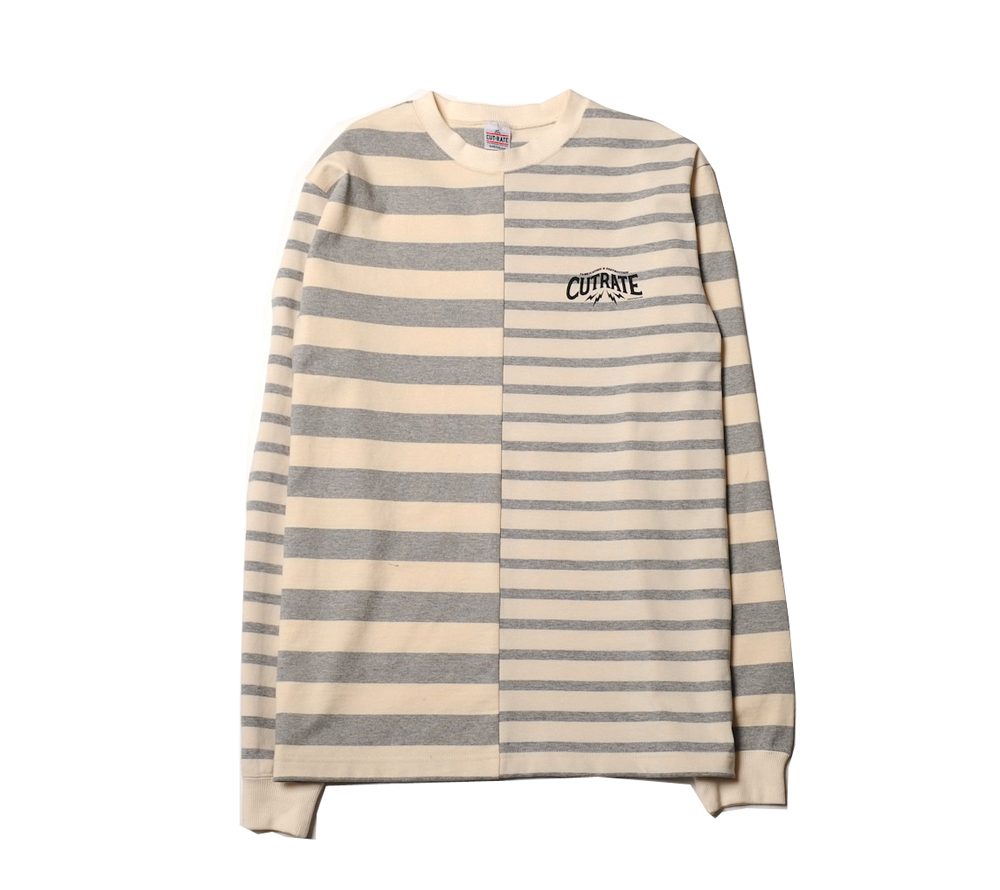 CUTRATEでは定番でリリースされているボーダーのL/S Tシャツとなります。今回は左右でピッチの違うのボーダーの肉厚なコットン生地を使用し、クレイジーパターンで作製されております。デザイナーの拘りが感じられるあまり見かける事のない仕様となっておりますので、新鮮味もあり、活躍してくれるアイテムではないでしょうか。